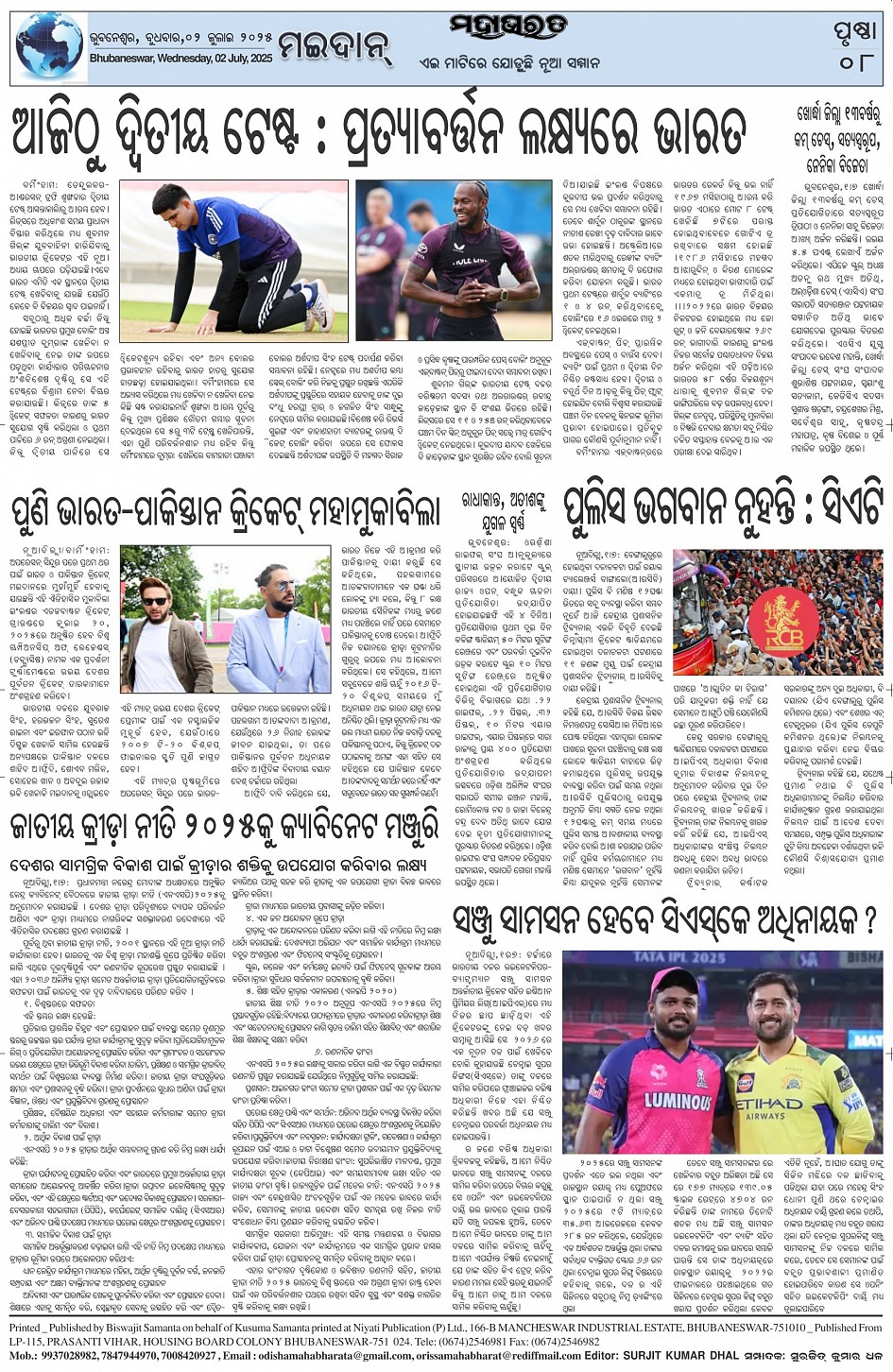 The Mahabharat Odia Daily Newspaper Page: 8 July 02, 2025 The Mahabharat Odia Daily Newspaper << First << 5 6 7 8 >> Last >> Page 1Page 2Page 3Page 4Page 5Page 6Page 7Page 8 × The Mahabharat Odia Daily Newspaper Page-1Page-2Page-3Page-4Page-5Page-6Page-7Page-8 Full PDF << First << 5 6 7 8 >> Last >> Page-1Page-2Page-3Page-4Page-5Page-6Page-7Page-8 Page-8