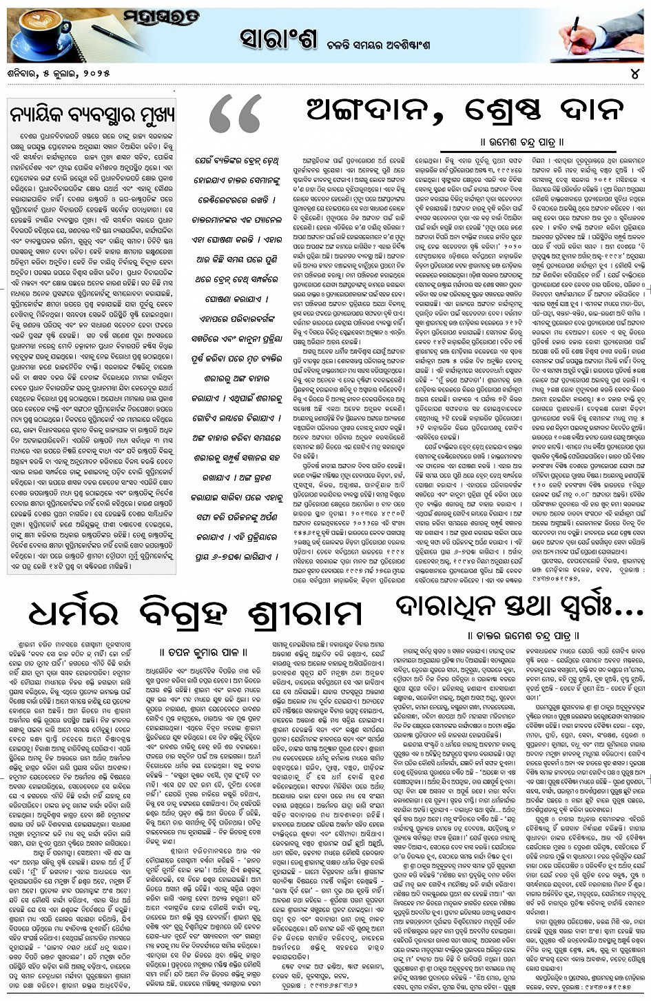 The Mahabharat Odia Daily Newspaper Page: 4 July 05, 2025 The Mahabharat Odia Daily Newspaper << First << 2 3 4 5 >> Last >> Page 1Page 2Page 3Page 4Page 5Page 6Page 7Page 8 × The Mahabharat Odia Daily Newspaper Page-1Page-2Page-3Page-4Page-5Page-6Page-7Page-8 Full PDF << First << 2 3 4 5 >> Last >> Page-1Page-2Page-3Page-4Page-5Page-6Page-7Page-8 Page-4