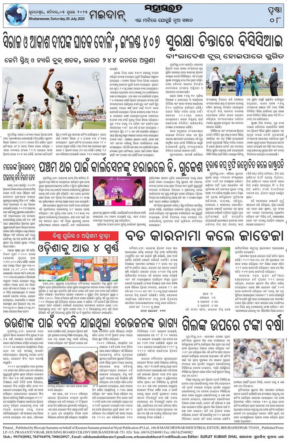 The Mahabharat Odia Daily Newspaper Page: 8 July 05, 2025 The Mahabharat Odia Daily Newspaper << First << 5 6 7 8 >> Last >> Page 1Page 2Page 3Page 4Page 5Page 6Page 7Page 8 × The Mahabharat Odia Daily Newspaper Page-1Page-2Page-3Page-4Page-5Page-6Page-7Page-8 Full PDF << First << 5 6 7 8 >> Last >> Page-1Page-2Page-3Page-4Page-5Page-6Page-7Page-8 Page-8