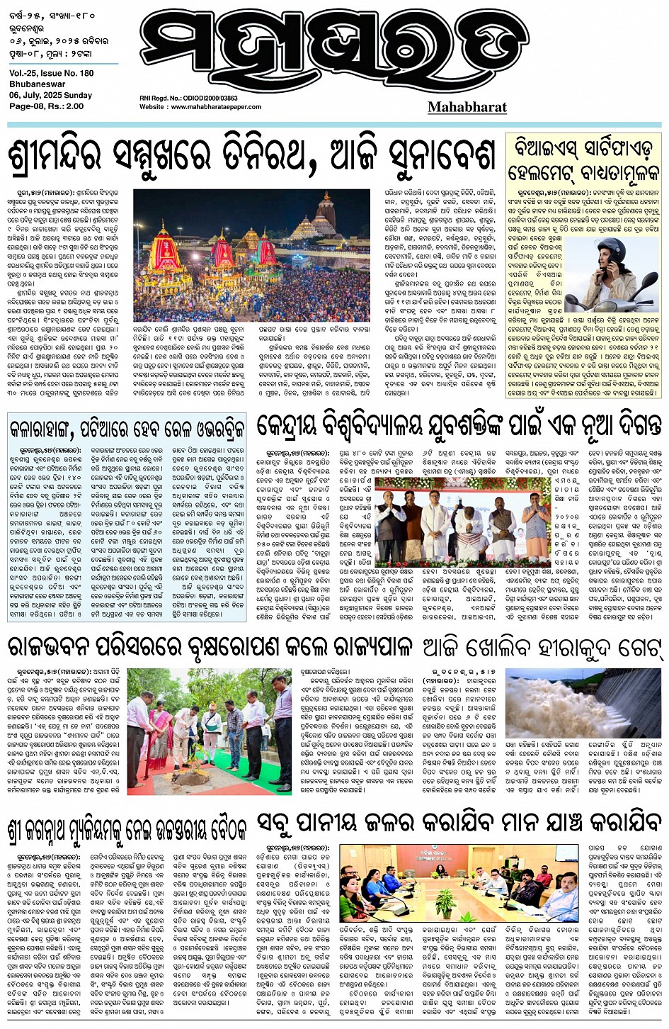 The Mahabharat Odia Daily Newspaper July 06, 2025 The Mahabharat Odia Daily Newspaper << First << 1 2 3 4 >> Last >> Page 1Page 2Page 3Page 4Page 5Page 6Page 7Page 8 × The Mahabharat Odia Daily Newspaper Page-1Page-2Page-3Page-4Page-5Page-6Page-7Page-8 Full PDF << First << 1 2 3 4 >> Last >> Page-1Page-2Page-3Page-4Page-5Page-6Page-7Page-8 Page-1