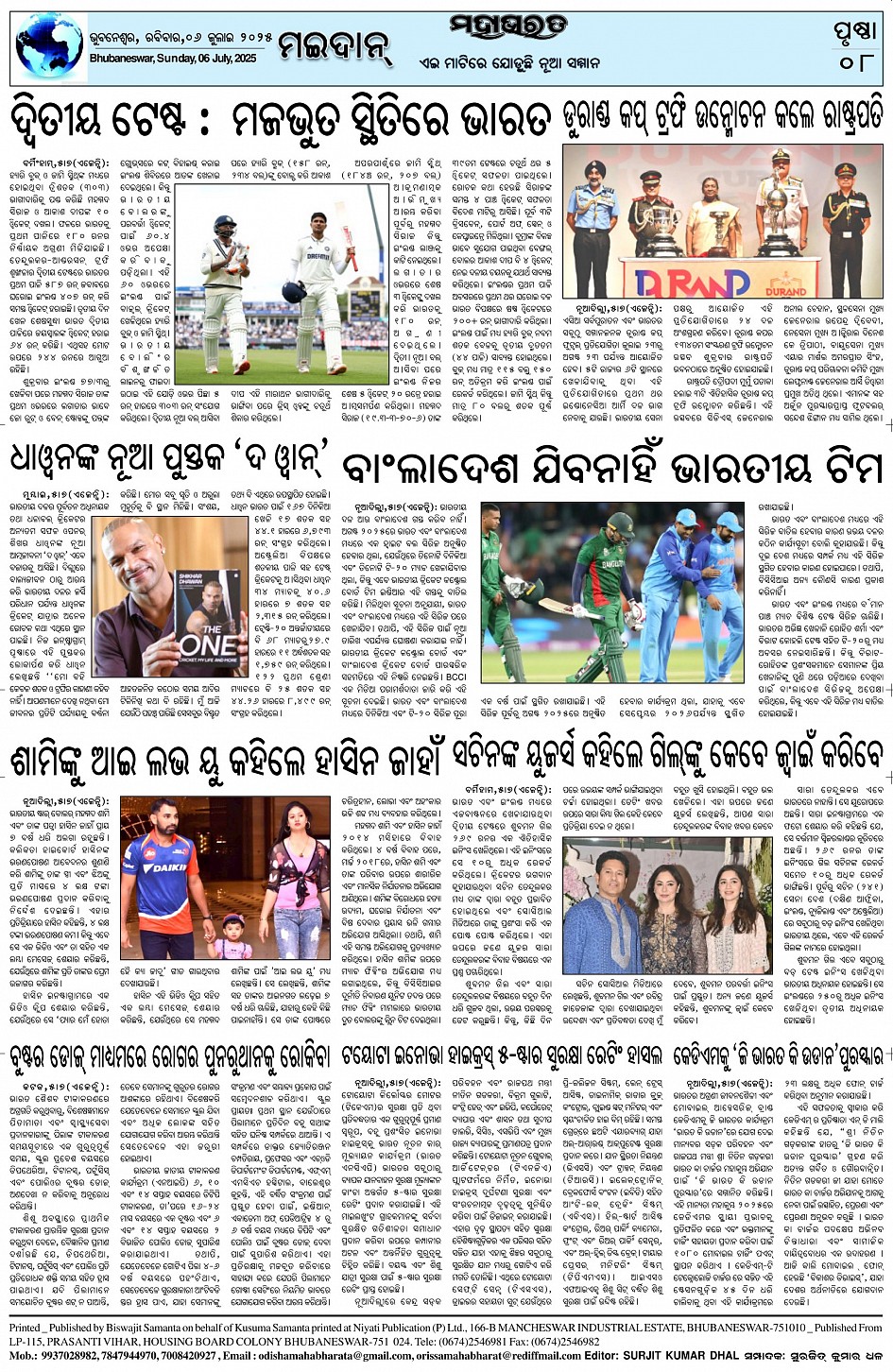 The Mahabharat Odia Daily Newspaper Page: 8 July 06, 2025 The Mahabharat Odia Daily Newspaper << First << 5 6 7 8 >> Last >> Page 1Page 2Page 3Page 4Page 5Page 6Page 7Page 8 × The Mahabharat Odia Daily Newspaper Page-1Page-2Page-3Page-4Page-5Page-6Page-7Page-8 Full PDF << First << 5 6 7 8 >> Last >> Page-1Page-2Page-3Page-4Page-5Page-6Page-7Page-8 Page-8