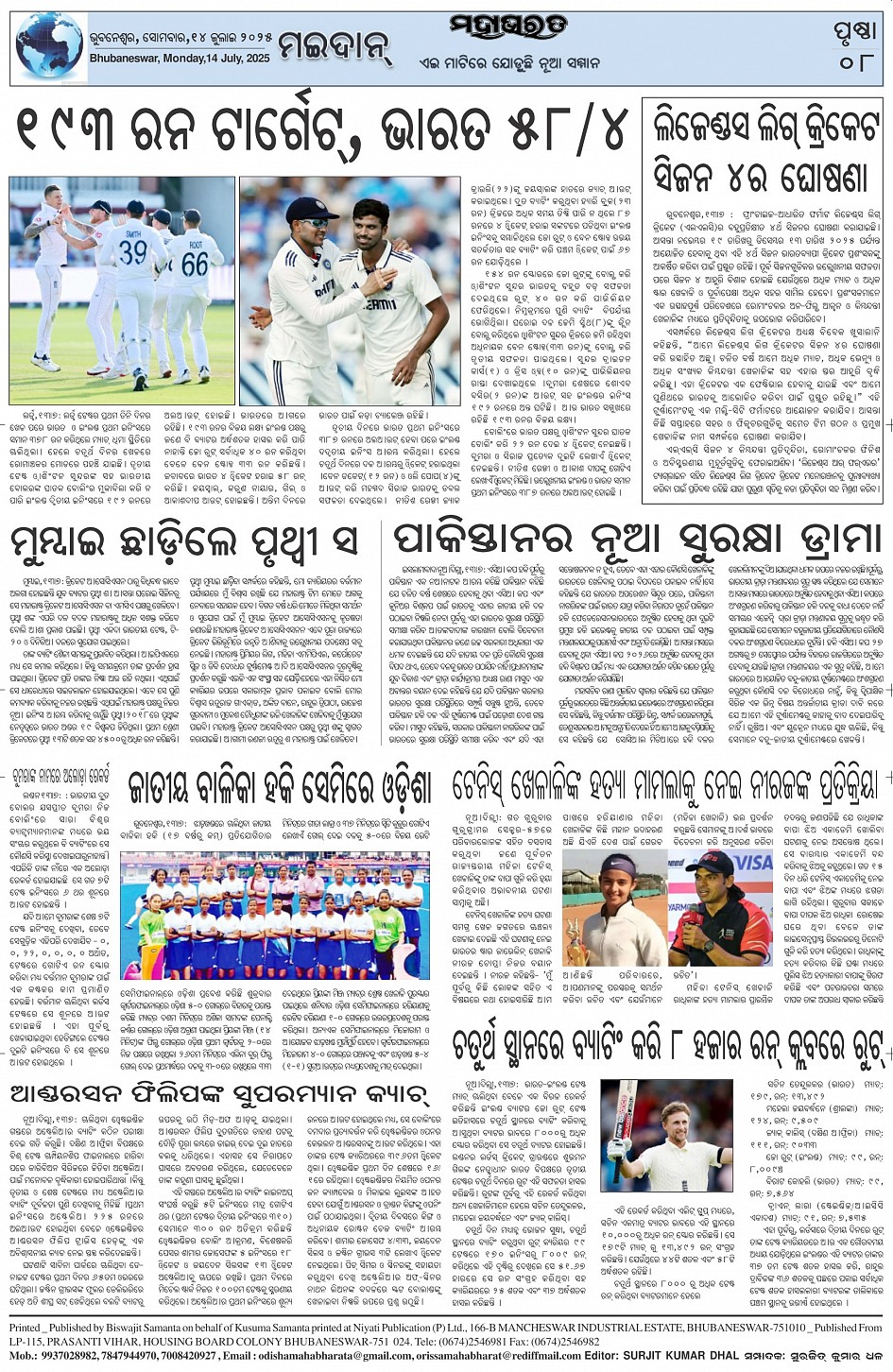 The Mahabharat Odia Daily Newspaper Page: 8 July 14, 2025 The Mahabharat Odia Daily Newspaper << First << 5 6 7 8 >> Last >> Page 1Page 2Page 3Page 4Page 5Page 6Page 7Page 8 × The Mahabharat Odia Daily Newspaper Page-1Page-2Page-3Page-4Page-5Page-6Page-7Page-8 Full PDF << First << 5 6 7 8 >> Last >> Page-1Page-2Page-3Page-4Page-5Page-6Page-7Page-8 Page-8