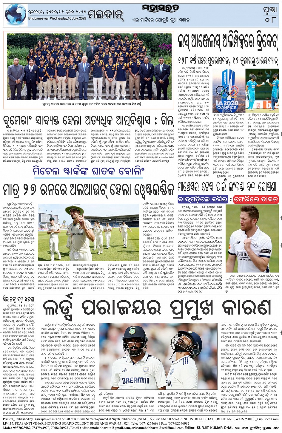 The Mahabharat Odia Daily Newspaper Page: 8 July 16, 2025 The Mahabharat Odia Daily Newspaper << First << 5 6 7 8 >> Last >> Page 1Page 2Page 3Page 4Page 5Page 6Page 7Page 8 × The Mahabharat Odia Daily Newspaper Page-1Page-2Page-3Page-4Page-5Page-6Page-7Page-8 Full PDF << First << 5 6 7 8 >> Last >> Page-1Page-2Page-3Page-4Page-5Page-6Page-7Page-8 Page-8
