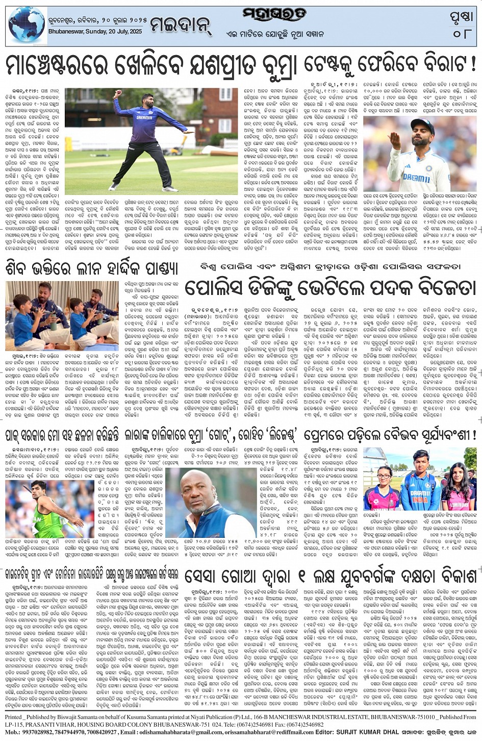The Mahabharat Odia Daily Newspaper Page: 8 July 20, 2025 The Mahabharat Odia Daily Newspaper << First << 5 6 7 8 >> Last >> Page 1Page 2Page 3Page 4Page 5Page 6Page 7Page 8 × The Mahabharat Odia Daily Newspaper Page-1Page-2Page-3Page-4Page-5Page-6Page-7Page-8 Full PDF << First << 5 6 7 8 >> Last >> Page-1Page-2Page-3Page-4Page-5Page-6Page-7Page-8 Page-8