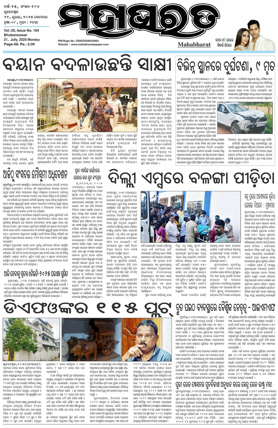The Mahabharat Odia Daily Newspaper July 21, 2025 The Mahabharat Odia Daily Newspaper << First << 1 2 3 4 >> Last >> Page 1Page 2Page 3Page 4Page 5Page 6Page 7Page 8 × The Mahabharat Odia Daily Newspaper Page-1Page-2Page-3Page-4Page-5Page-6Page-7Page-8 Full PDF << First << 1 2 3 4 >> Last >> Page-1Page-2Page-3Page-4Page-5Page-6Page-7Page-8 Page-1