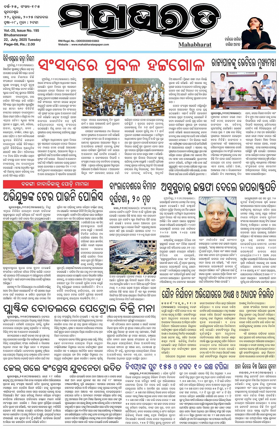 The Mahabharat Odia Daily Newspaper July 22, 2025 The Mahabharat Odia Daily Newspaper << First << 1 2 3 4 >> Last >> Page 1Page 2Page 3Page 4Page 5Page 6Page 7Page 8 × The Mahabharat Odia Daily Newspaper Page-1Page-2Page-3Page-4Page-5Page-6Page-7Page-8 Full PDF << First << 1 2 3 4 >> Last >> Page-1Page-2Page-3Page-4Page-5Page-6Page-7Page-8 Page-1