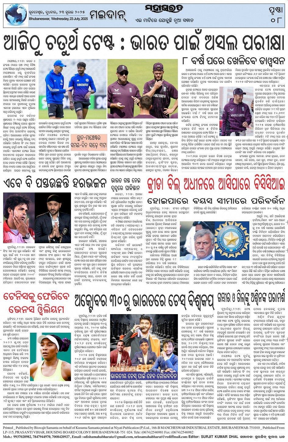The Mahabharat Odia Daily Newspaper Page: 8 July 23, 2025 The Mahabharat Odia Daily Newspaper << First << 5 6 7 8 >> Last >> Page 1Page 2Page 3Page 4Page 5Page 6Page 7Page 8 × The Mahabharat Odia Daily Newspaper Page-1Page-2Page-3Page-4Page-5Page-6Page-7Page-8 Full PDF << First << 5 6 7 8 >> Last >> Page-1Page-2Page-3Page-4Page-5Page-6Page-7Page-8 Page-8