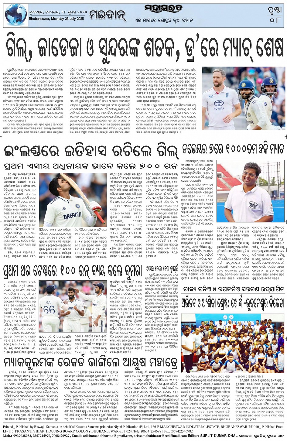 The Mahabharat Odia Daily Newspaper Page: 8 July 28, 2025 The Mahabharat Odia Daily Newspaper << First << 5 6 7 8 >> Last >> Page 1Page 2Page 3Page 4Page 5Page 6Page 7Page 8 × The Mahabharat Odia Daily Newspaper Page-1Page-2Page-3Page-4Page-5Page-6Page-7Page-8 Full PDF << First << 5 6 7 8 >> Last >> Page-1Page-2Page-3Page-4Page-5Page-6Page-7Page-8 Page-8