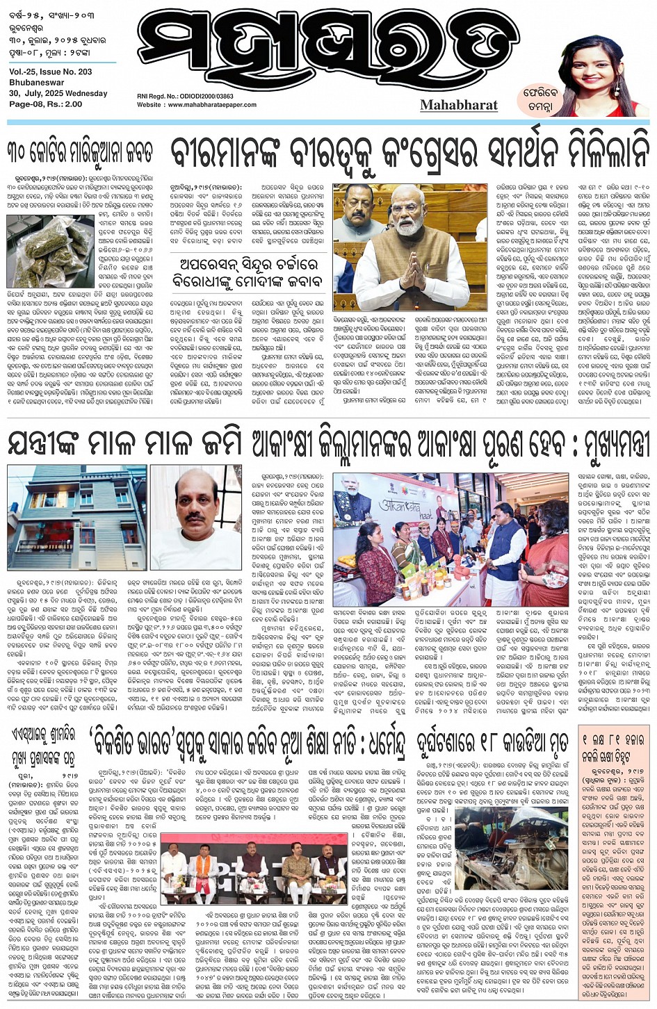 The Mahabharat Odia Daily Newspaper July 30, 2025 The Mahabharat Odia Daily Newspaper << First << 1 2 3 4 >> Last >> Page 1Page 2Page 3Page 4Page 5Page 6Page 7Page 8 × The Mahabharat Odia Daily Newspaper Page-1Page-2Page-3Page-4Page-5Page-6Page-7Page-8 Full PDF << First << 1 2 3 4 >> Last >> Page-1Page-2Page-3Page-4Page-5Page-6Page-7Page-8 Page-1