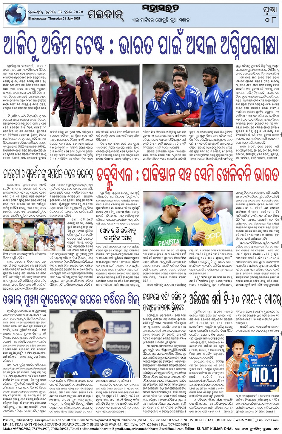 The Mahabharat Odia Daily Newspaper Page: 8 July 31, 2025 The Mahabharat Odia Daily Newspaper << First << 5 6 7 8 >> Last >> Page 1Page 2Page 3Page 4Page 5Page 6Page 7Page 8 × The Mahabharat Odia Daily Newspaper Page-1Page-2Page-3Page-4Page-5Page-6Page-7Page-8 Full PDF << First << 5 6 7 8 >> Last >> Page-1Page-2Page-3Page-4Page-5Page-6Page-7Page-8 Page-8