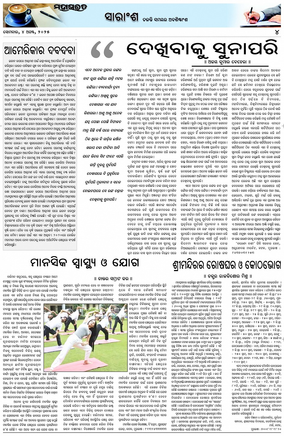 The Mahabharat Odia Daily Newspaper Page: 4 August 04, 2025 The Mahabharat Odia Daily Newspaper << First << 2 3 4 5 >> Last >> Page 1Page 2Page 3Page 4Page 5Page 6Page 7Page 8 × The Mahabharat Odia Daily Newspaper Page-1Page-2Page-3Page-4Page-5Page-6Page-7Page-8 Full PDF << First << 2 3 4 5 >> Last >> Page-1Page-2Page-3Page-4Page-5Page-6Page-7Page-8 Page-4