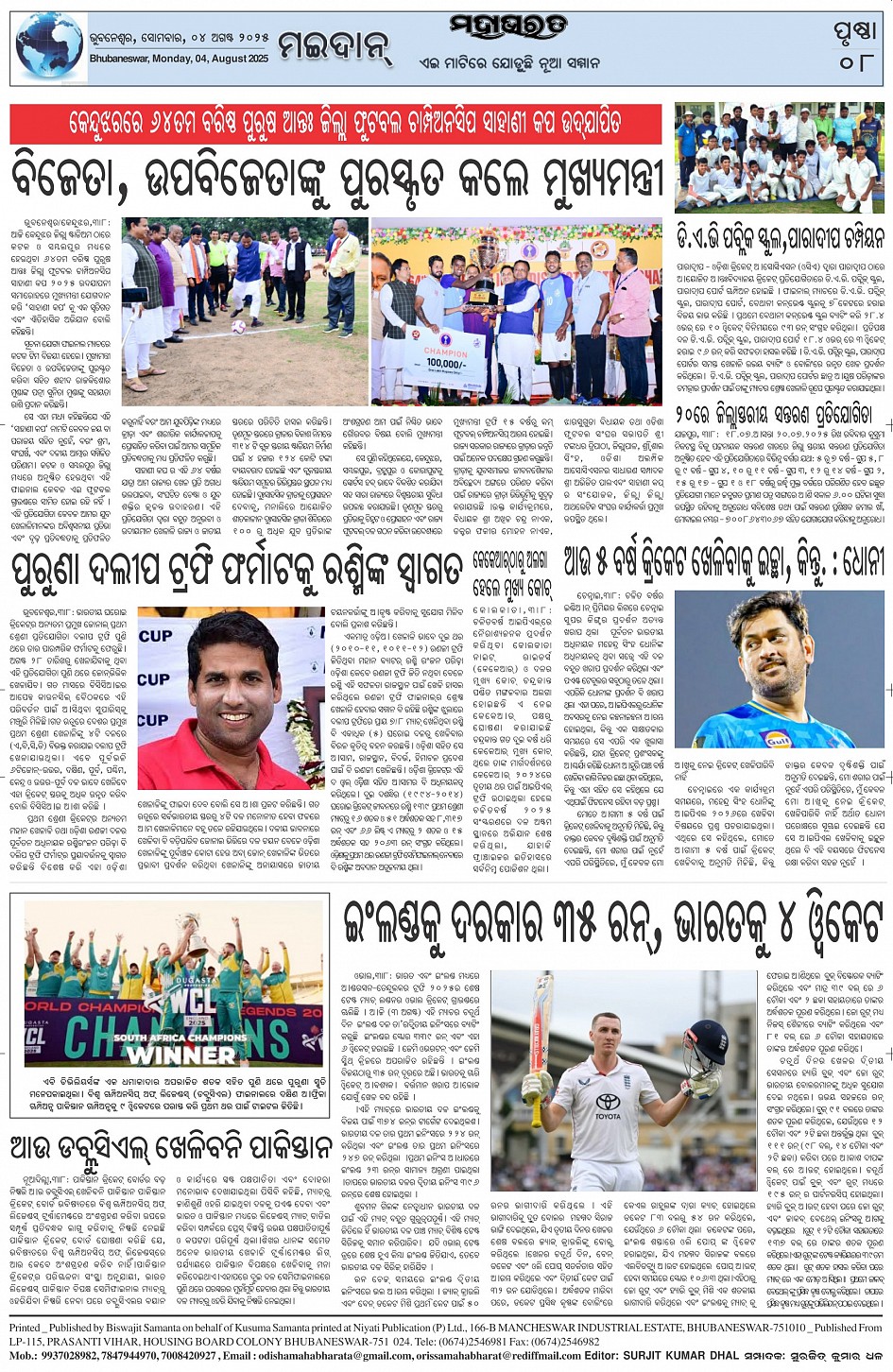 The Mahabharat Odia Daily Newspaper Page: 8 August 04, 2025 The Mahabharat Odia Daily Newspaper << First << 5 6 7 8 >> Last >> Page 1Page 2Page 3Page 4Page 5Page 6Page 7Page 8 × The Mahabharat Odia Daily Newspaper Page-1Page-2Page-3Page-4Page-5Page-6Page-7Page-8 Full PDF << First << 5 6 7 8 >> Last >> Page-1Page-2Page-3Page-4Page-5Page-6Page-7Page-8 Page-8