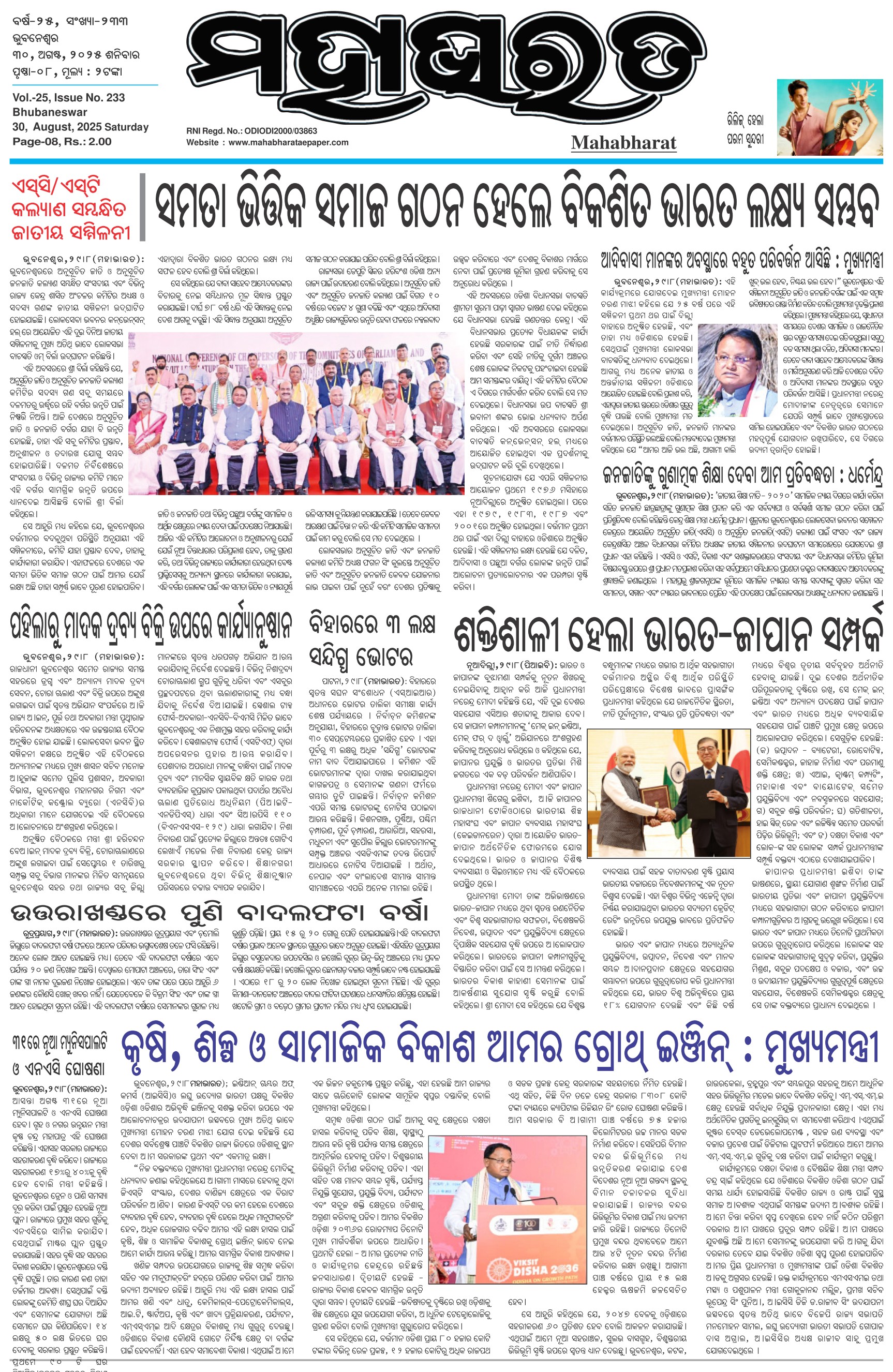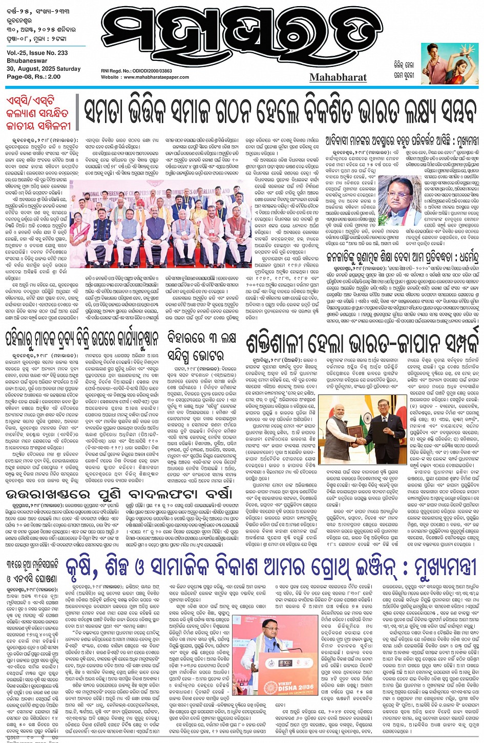 The Mahabharat Odia Daily Newspaper August 30, 2025 The Mahabharat Odia Daily Newspaper << First << 1 2 3 4 >> Last >> Page 1Page 2Page 3Page 4Page 5Page 6Page 7Page 8 × The Mahabharat Odia Daily Newspaper Page-1Page-2Page-3Page-4Page-5Page-6Page-7Page-8 Full PDF << First << 1 2 3 4 >> Last >> Page-1Page-2Page-3Page-4Page-5Page-6Page-7Page-8 Page-1