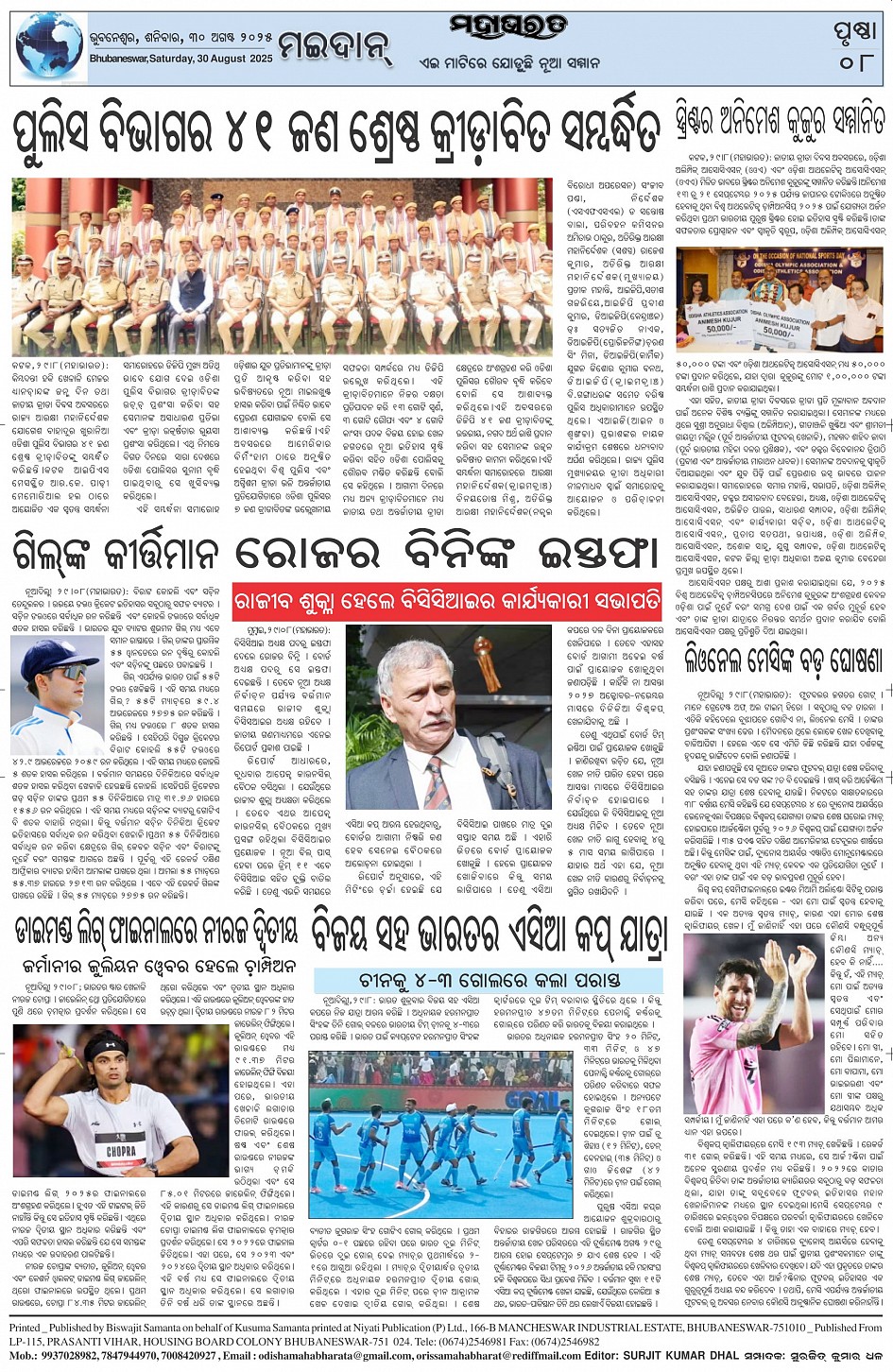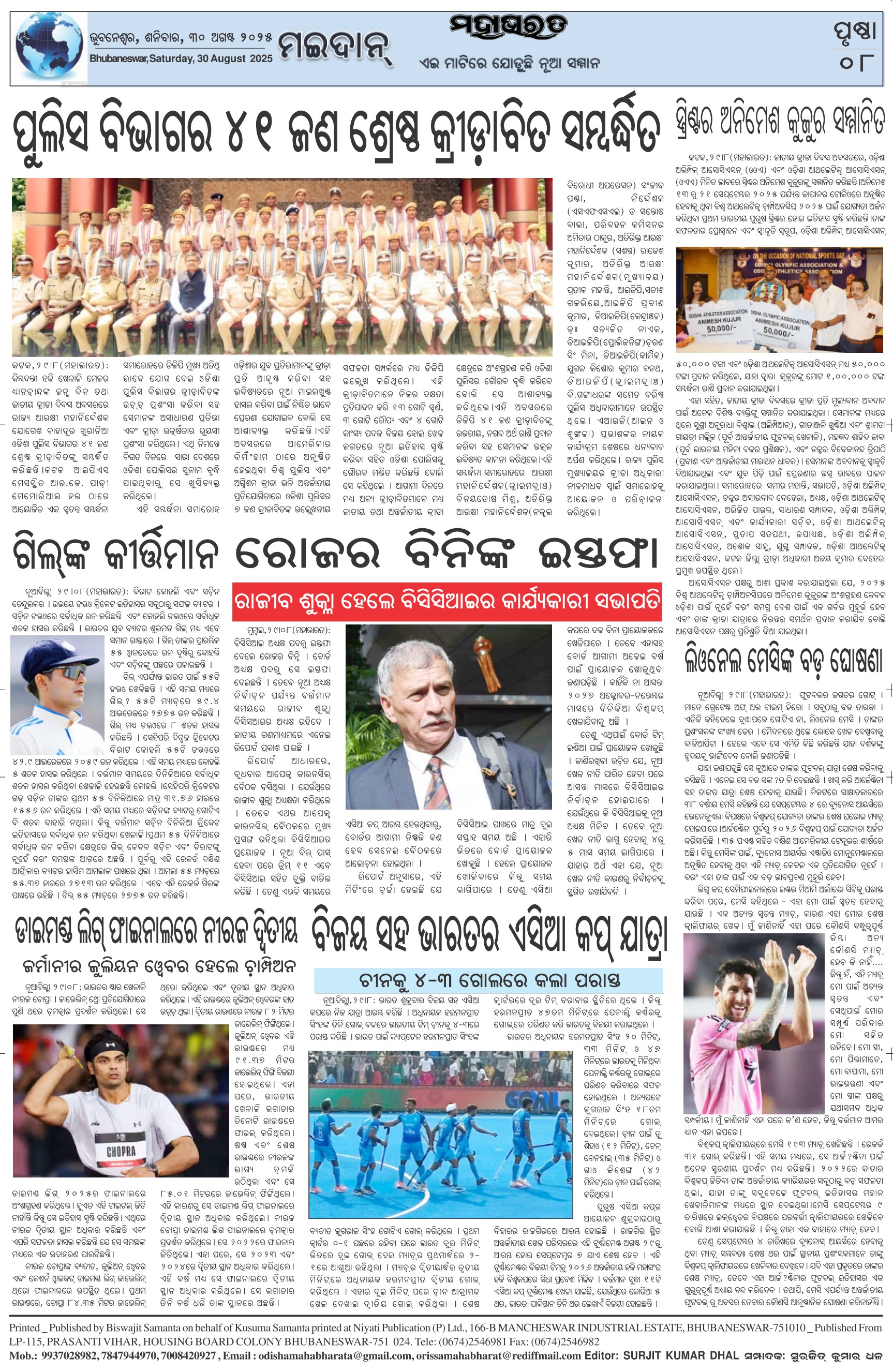 The Mahabharat Odia Daily Newspaper Page: 8 August 30, 2025 The Mahabharat Odia Daily Newspaper << First << 5 6 7 8 >> Last >> Page 1Page 2Page 3Page 4Page 5Page 6Page 7Page 8 × The Mahabharat Odia Daily Newspaper Page-1Page-2Page-3Page-4Page-5Page-6Page-7Page-8 Full PDF << First << 5 6 7 8 >> Last >> Page-1Page-2Page-3Page-4Page-5Page-6Page-7Page-8 Page-8