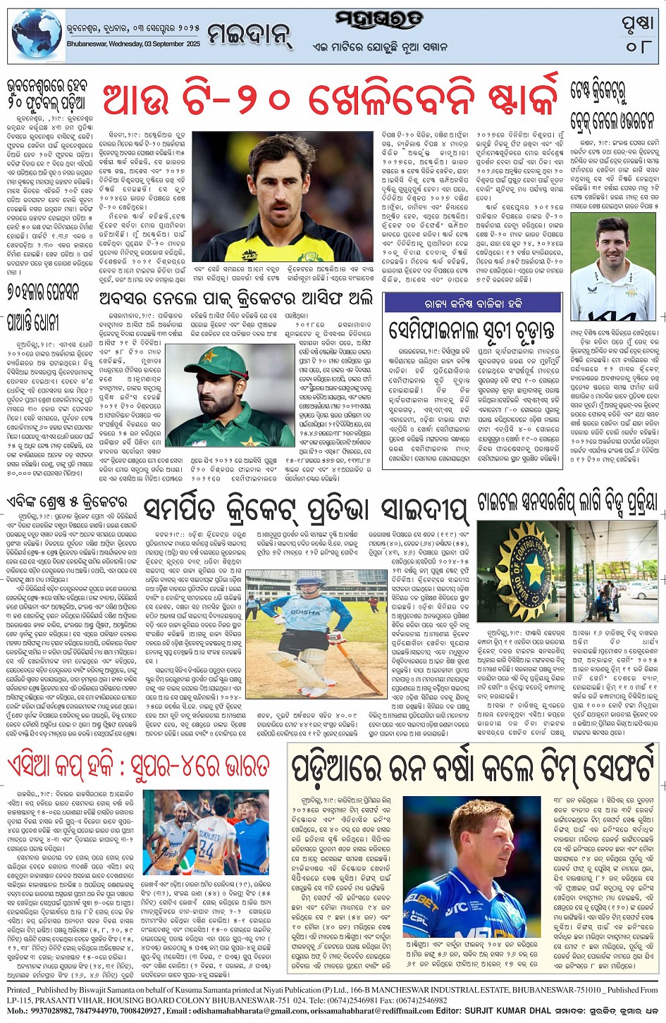 The Mahabharat Odia Daily Newspaper Page: 8 September 03, 2025 The Mahabharat Odia Daily Newspaper << First << 5 6 7 8 >> Last >> Page 1Page 2Page 3Page 4Page 5Page 6Page 7Page 8 × The Mahabharat Odia Daily Newspaper Page-1Page-2Page-3Page-4Page-5Page-6Page-7Page-8 Full PDF << First << 5 6 7 8 >> Last >> Page-1Page-2Page-3Page-4Page-5Page-6Page-7Page-8 Page-8