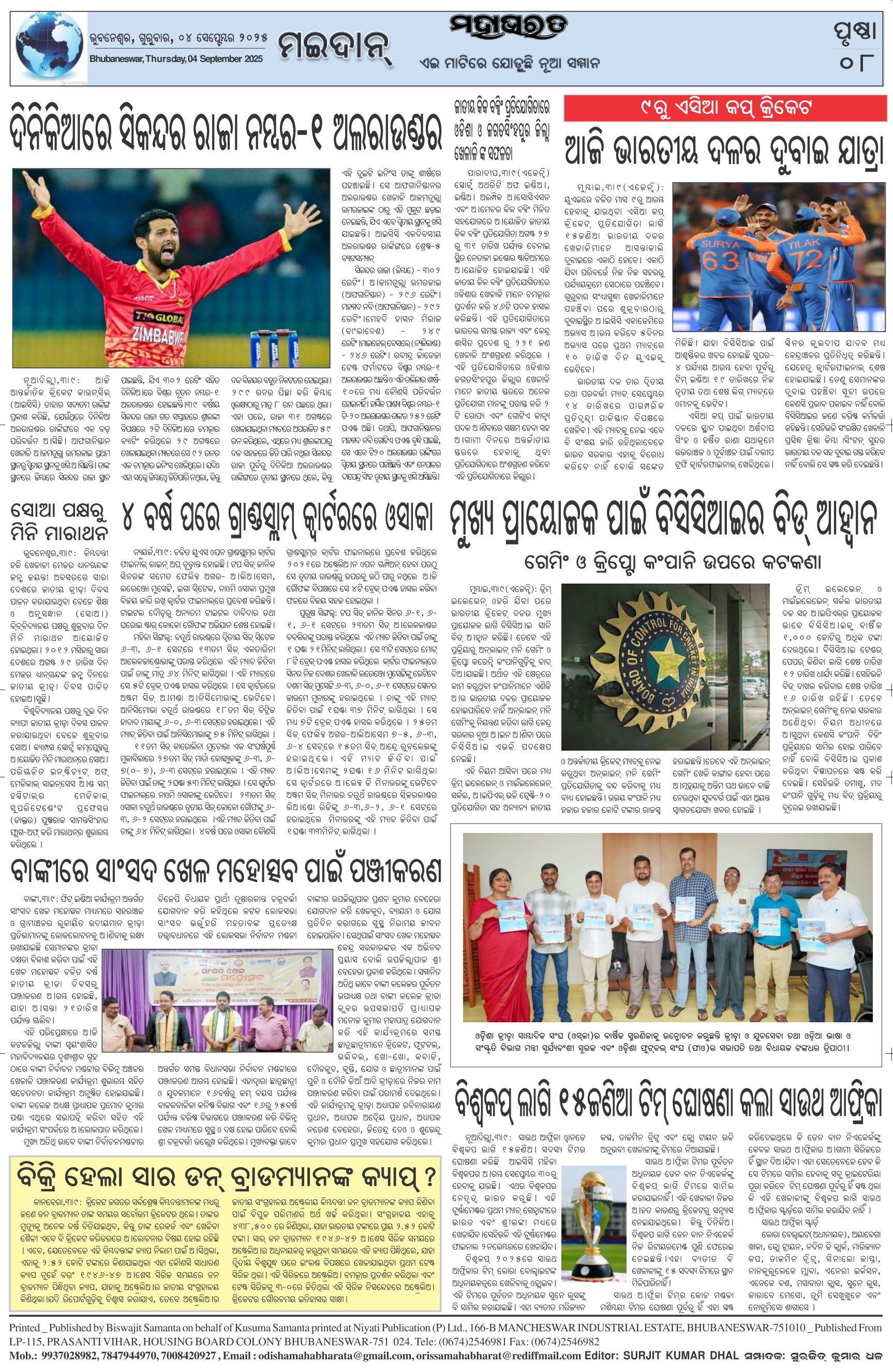 The Mahabharat Odia Daily Newspaper Page: 8 September 04, 2025 The Mahabharat Odia Daily Newspaper << First << 5 6 7 8 >> Last >> Page 1Page 2Page 3Page 4Page 5Page 6Page 7Page 8 × The Mahabharat Odia Daily Newspaper Page-1Page-2Page-3Page-4Page-5Page-6Page-7Page-8 Full PDF << First << 5 6 7 8 >> Last >> Page-1Page-2Page-3Page-4Page-5Page-6Page-7Page-8 Page-8