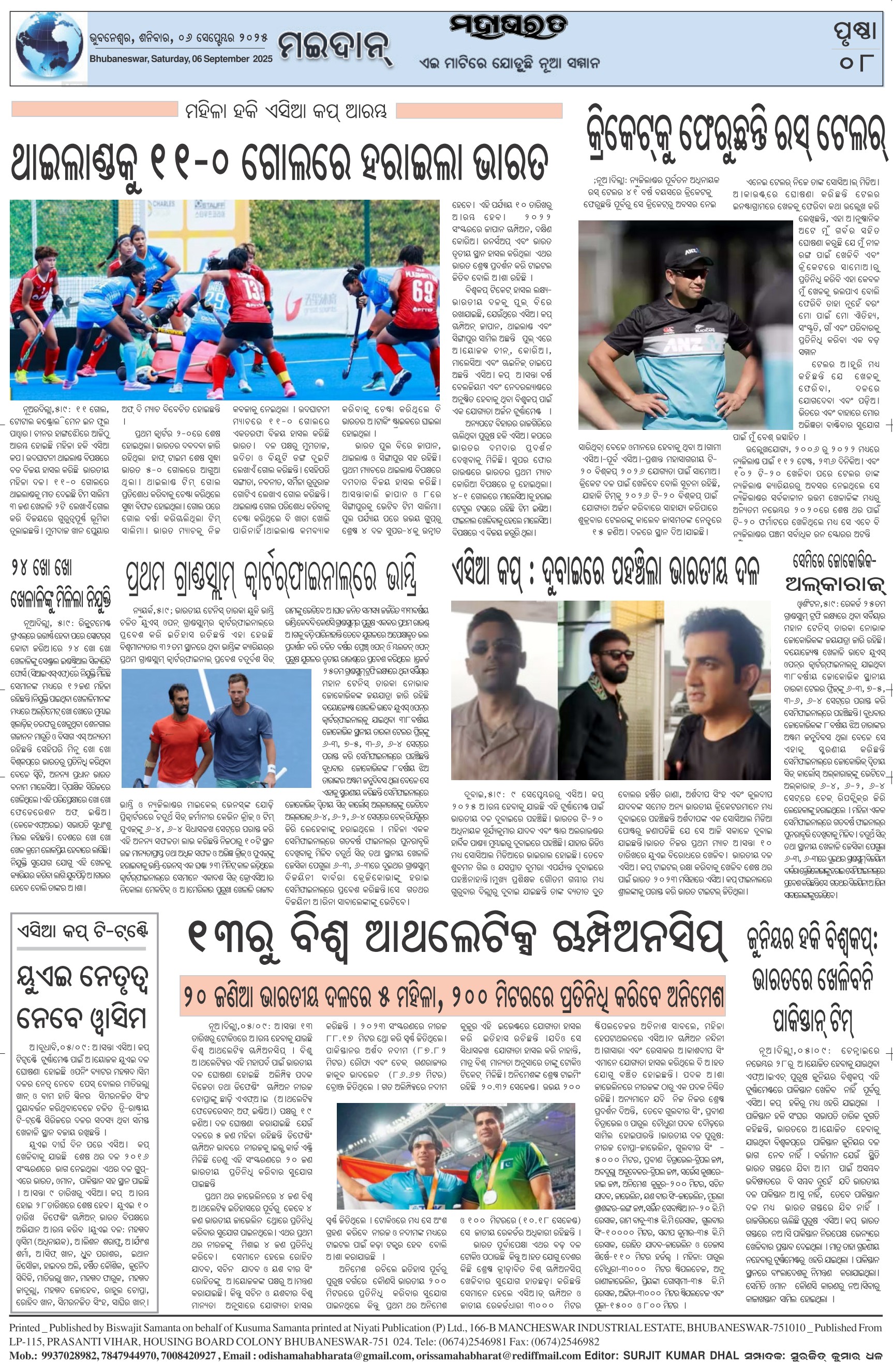 The Mahabharat Odia Daily Newspaper Page: 8 September 06, 2025 The Mahabharat Odia Daily Newspaper << First << 5 6 7 8 >> Last >> Page 1Page 2Page 3Page 4Page 5Page 6Page 7Page 8 × The Mahabharat Odia Daily Newspaper Page-1Page-2Page-3Page-4Page-5Page-6Page-7Page-8 Full PDF << First << 5 6 7 8 >> Last >> Page-1Page-2Page-3Page-4Page-5Page-6Page-7Page-8 Page-8