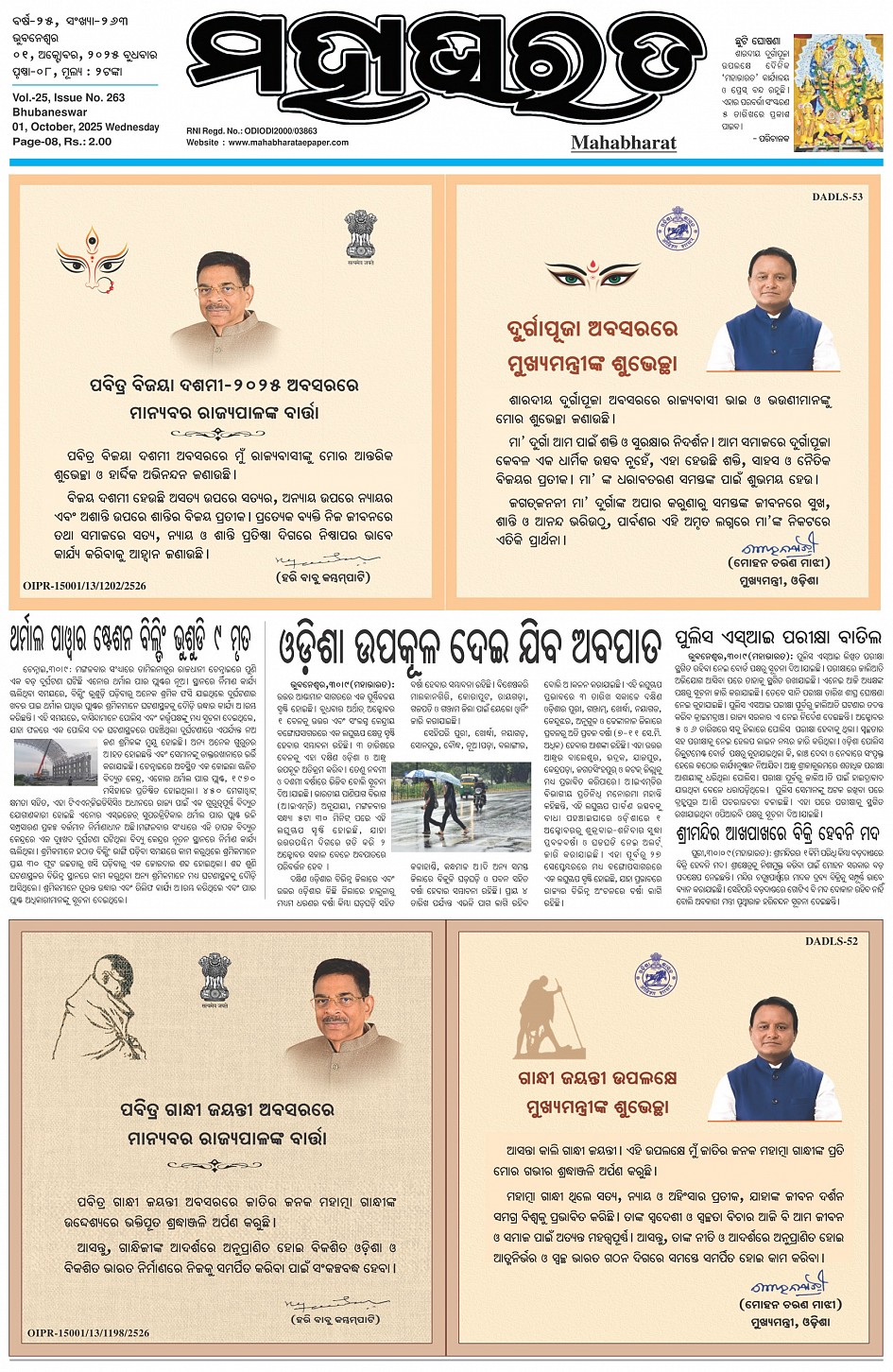 The Mahabharat Odia Daily Newspaper October 01, 2025 The Mahabharat Odia Daily Newspaper << First << 1 2 3 4 >> Last >> Page 1Page 2Page 3Page 4Page 5Page 6Page 7Page 8 × The Mahabharat Odia Daily Newspaper Page-1Page-2Page-3Page-4Page-5Page-6Page-7Page-8 Full PDF << First << 1 2 3 4 >> Last >> Page-1Page-2Page-3Page-4Page-5Page-6Page-7Page-8 Page-1