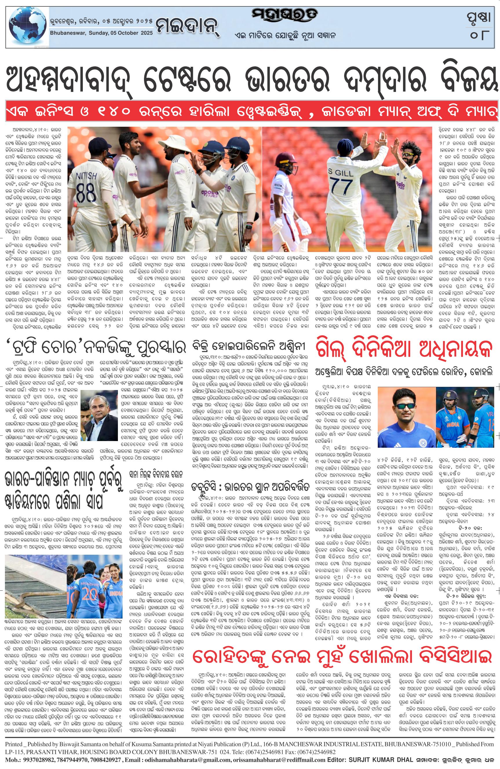The Mahabharat Odia Daily Newspaper Page: 8 October 05, 2025 The Mahabharat Odia Daily Newspaper << First << 5 6 7 8 >> Last >> Page 1Page 2Page 3Page 4Page 5Page 6Page 7Page 8 × The Mahabharat Odia Daily Newspaper Page-1Page-2Page-3Page-4Page-5Page-6Page-7Page-8 Full PDF << First << 5 6 7 8 >> Last >> Page-1Page-2Page-3Page-4Page-5Page-6Page-7Page-8 Page-8