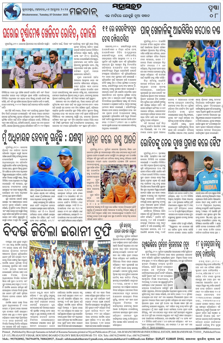 The Mahabharat Odia Daily Newspaper Page: 8 October 07, 2025 The Mahabharat Odia Daily Newspaper << First << 5 6 7 8 >> Last >> Page 1Page 2Page 3Page 4Page 5Page 6Page 7Page 8 × The Mahabharat Odia Daily Newspaper Page-1Page-2Page-3Page-4Page-5Page-6Page-7Page-8 Full PDF << First << 5 6 7 8 >> Last >> Page-1Page-2Page-3Page-4Page-5Page-6Page-7Page-8 Page-8