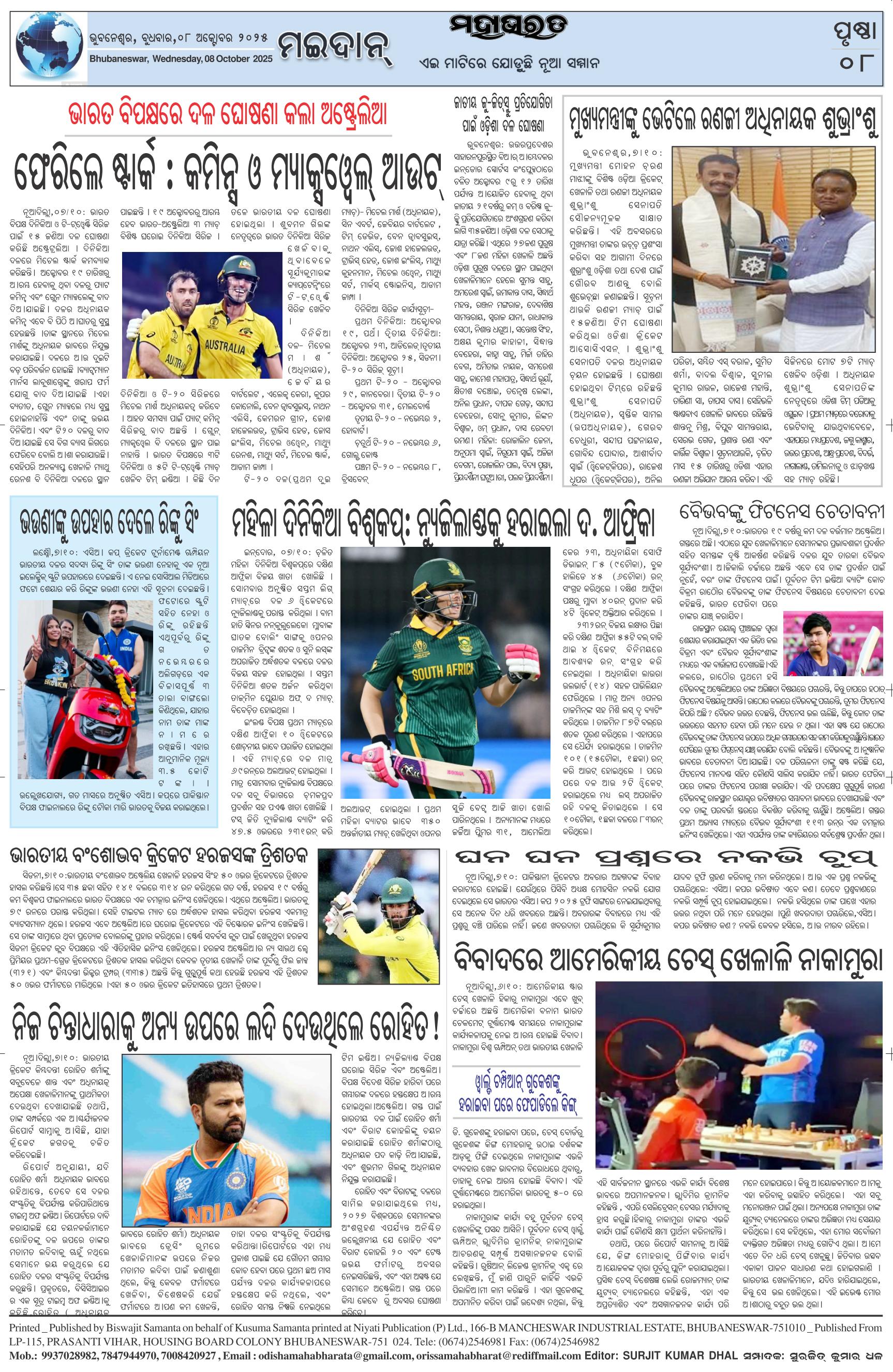 The Mahabharat Odia Daily Newspaper Page: 8 October 08, 2025 The Mahabharat Odia Daily Newspaper << First << 5 6 7 8 >> Last >> Page 1Page 2Page 3Page 4Page 5Page 6Page 7Page 8 × The Mahabharat Odia Daily Newspaper Page-1Page-2Page-3Page-4Page-5Page-6Page-7Page-8 Full PDF << First << 5 6 7 8 >> Last >> Page-1Page-2Page-3Page-4Page-5Page-6Page-7Page-8 Page-8