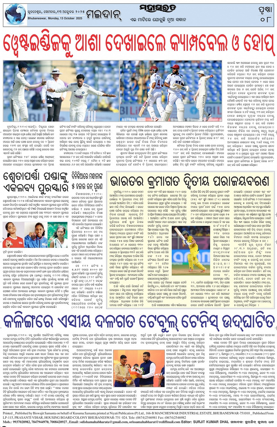 The Mahabharat Odia Daily Newspaper Page: 8 October 13, 2025 The Mahabharat Odia Daily Newspaper << First << 5 6 7 8 >> Last >> Page 1Page 2Page 3Page 4Page 5Page 6Page 7Page 8 × The Mahabharat Odia Daily Newspaper Page-1Page-2Page-3Page-4Page-5Page-6Page-7Page-8 Full PDF << First << 5 6 7 8 >> Last >> Page-1Page-2Page-3Page-4Page-5Page-6Page-7Page-8 Page-8