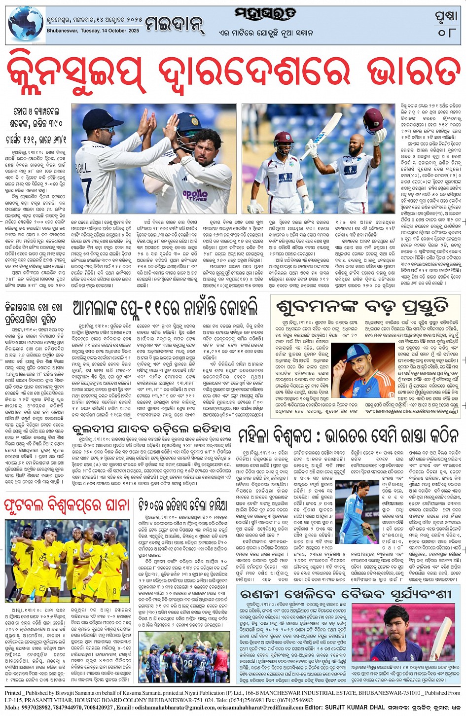 The Mahabharat Odia Daily Newspaper Page: 8 October 14, 2025 The Mahabharat Odia Daily Newspaper << First << 5 6 7 8 >> Last >> Page 1Page 2Page 3Page 4Page 5Page 6Page 7Page 8 × The Mahabharat Odia Daily Newspaper Page-1Page-2Page-3Page-4Page-5Page-6Page-7Page-8 Full PDF << First << 5 6 7 8 >> Last >> Page-1Page-2Page-3Page-4Page-5Page-6Page-7Page-8 Page-8