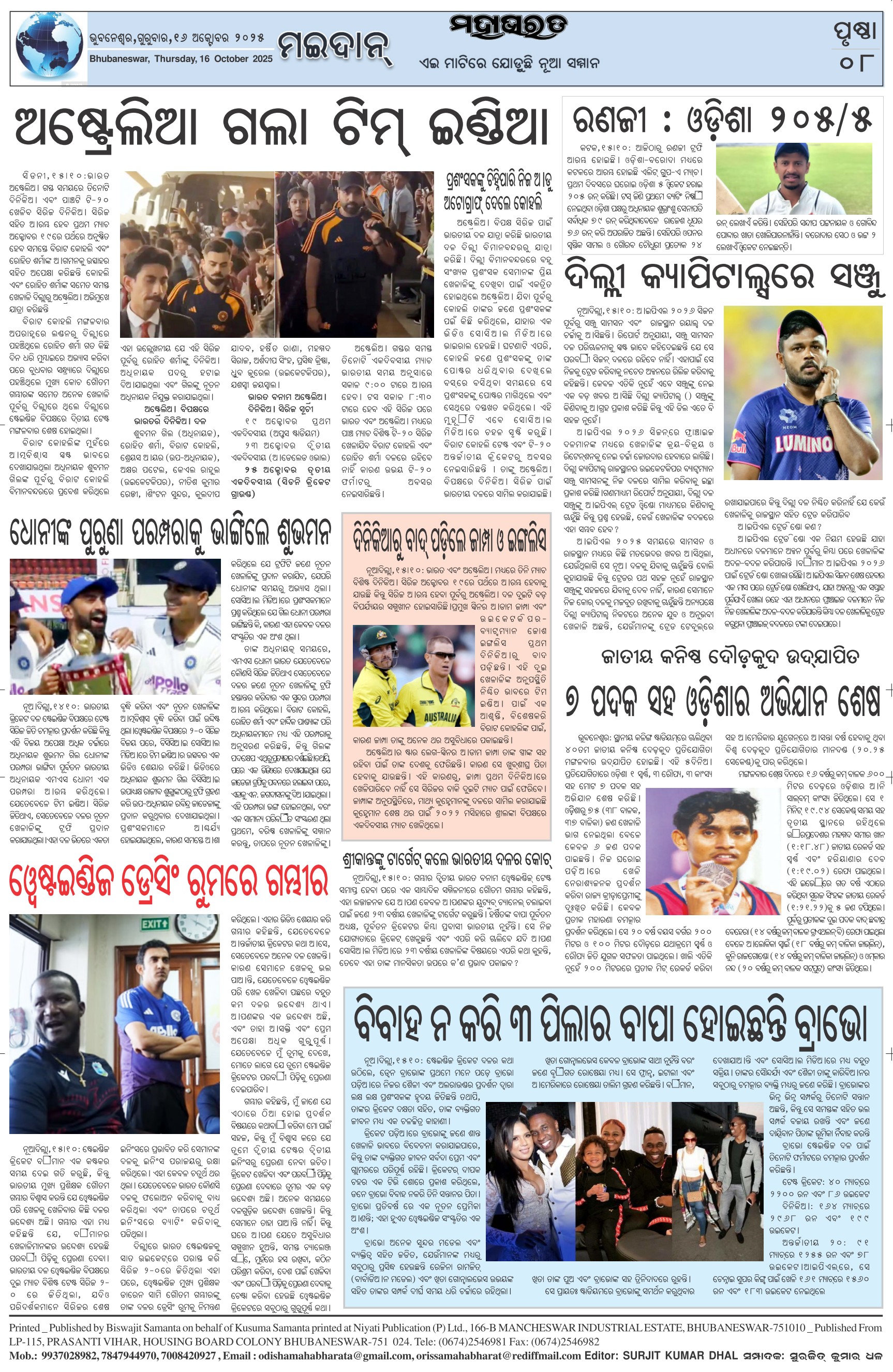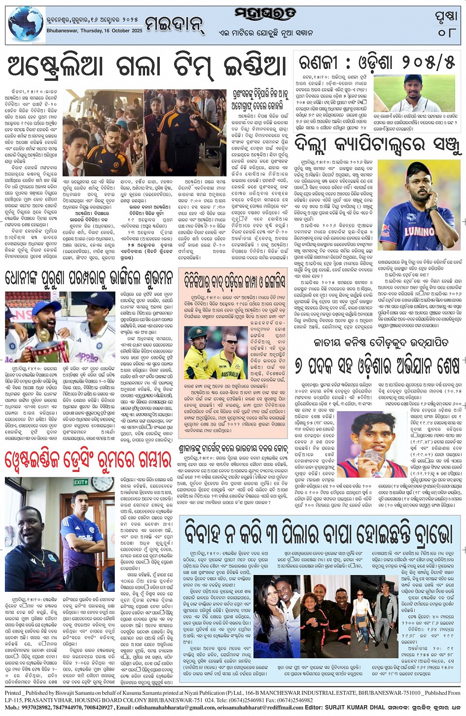 The Mahabharat Odia Daily Newspaper Page: 8 October 16, 2025 The Mahabharat Odia Daily Newspaper << First << 5 6 7 8 >> Last >> Page 1Page 2Page 3Page 4Page 5Page 6Page 7Page 8 × The Mahabharat Odia Daily Newspaper Page-1Page-2Page-3Page-4Page-5Page-6Page-7Page-8 Full PDF << First << 5 6 7 8 >> Last >> Page-1Page-2Page-3Page-4Page-5Page-6Page-7Page-8 Page-8