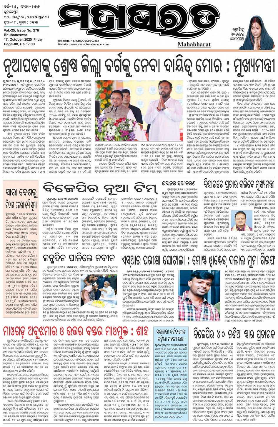 The Mahabharat Odia Daily Newspaper October 17, 2025 The Mahabharat Odia Daily Newspaper << First << 1 2 3 4 >> Last >> Page 1Page 2Page 3Page 4Page 5Page 6Page 7Page 8 × The Mahabharat Odia Daily Newspaper Page-1Page-2Page-3Page-4Page-5Page-6Page-7Page-8 Full PDF << First << 1 2 3 4 >> Last >> Page-1Page-2Page-3Page-4Page-5Page-6Page-7Page-8 Page-1