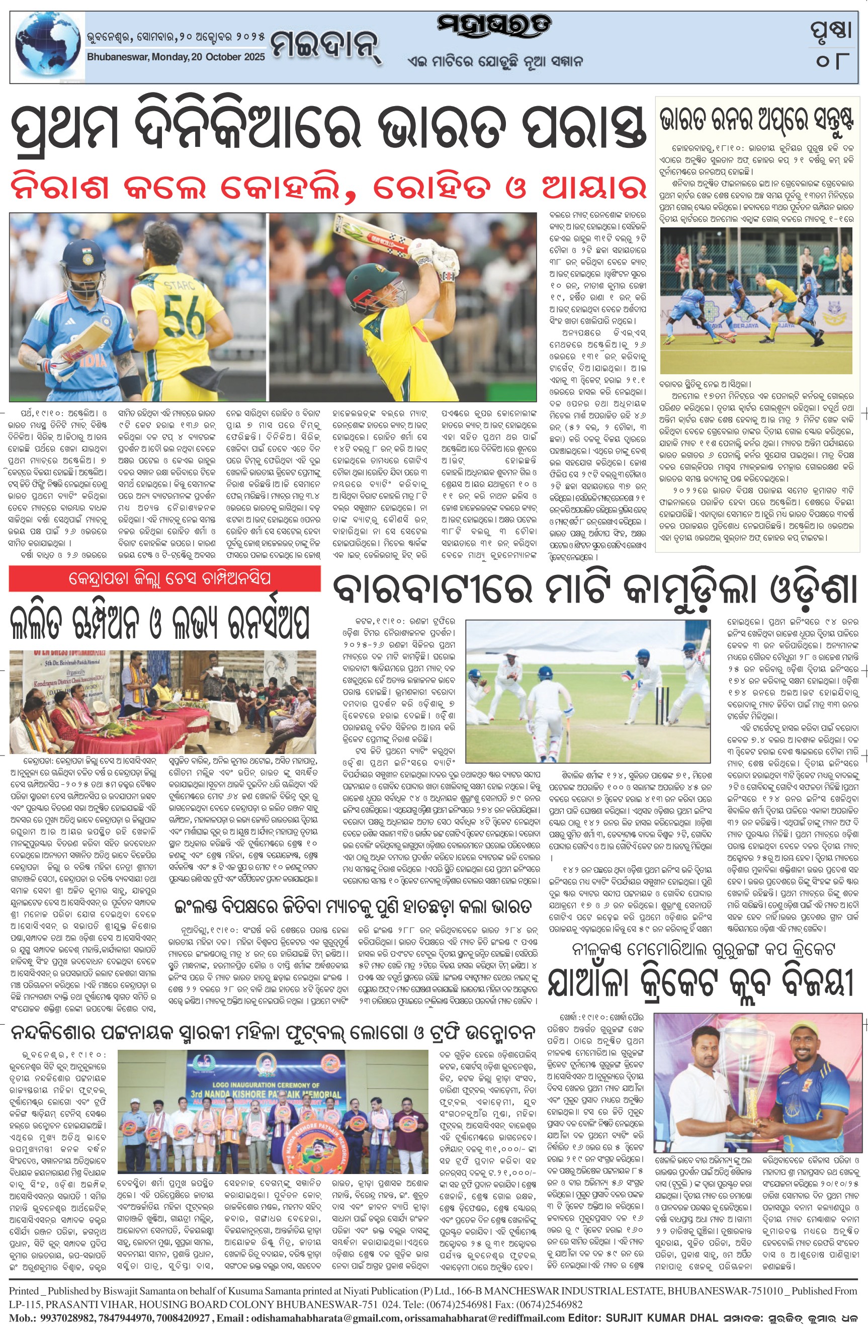 The Mahabharat Odia Daily Newspaper Page: 8 October 20, 2025 The Mahabharat Odia Daily Newspaper << First << 5 6 7 8 >> Last >> Page 1Page 2Page 3Page 4Page 5Page 6Page 7Page 8 × The Mahabharat Odia Daily Newspaper Page-1Page-2Page-3Page-4Page-5Page-6Page-7Page-8 Full PDF << First << 5 6 7 8 >> Last >> Page-1Page-2Page-3Page-4Page-5Page-6Page-7Page-8 Page-8