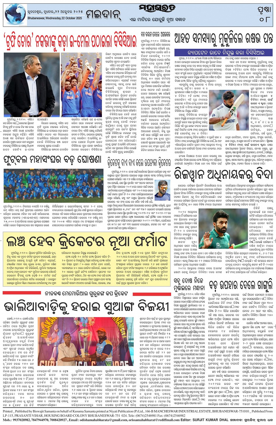 The Mahabharat Odia Daily Newspaper Page: 8 October 22, 2025 The Mahabharat Odia Daily Newspaper << First << 5 6 7 8 >> Last >> Page 1Page 2Page 3Page 4Page 5Page 6Page 7Page 8 × The Mahabharat Odia Daily Newspaper Page-1Page-2Page-3Page-4Page-5Page-6Page-7Page-8 Full PDF << First << 5 6 7 8 >> Last >> Page-1Page-2Page-3Page-4Page-5Page-6Page-7Page-8 Page-8