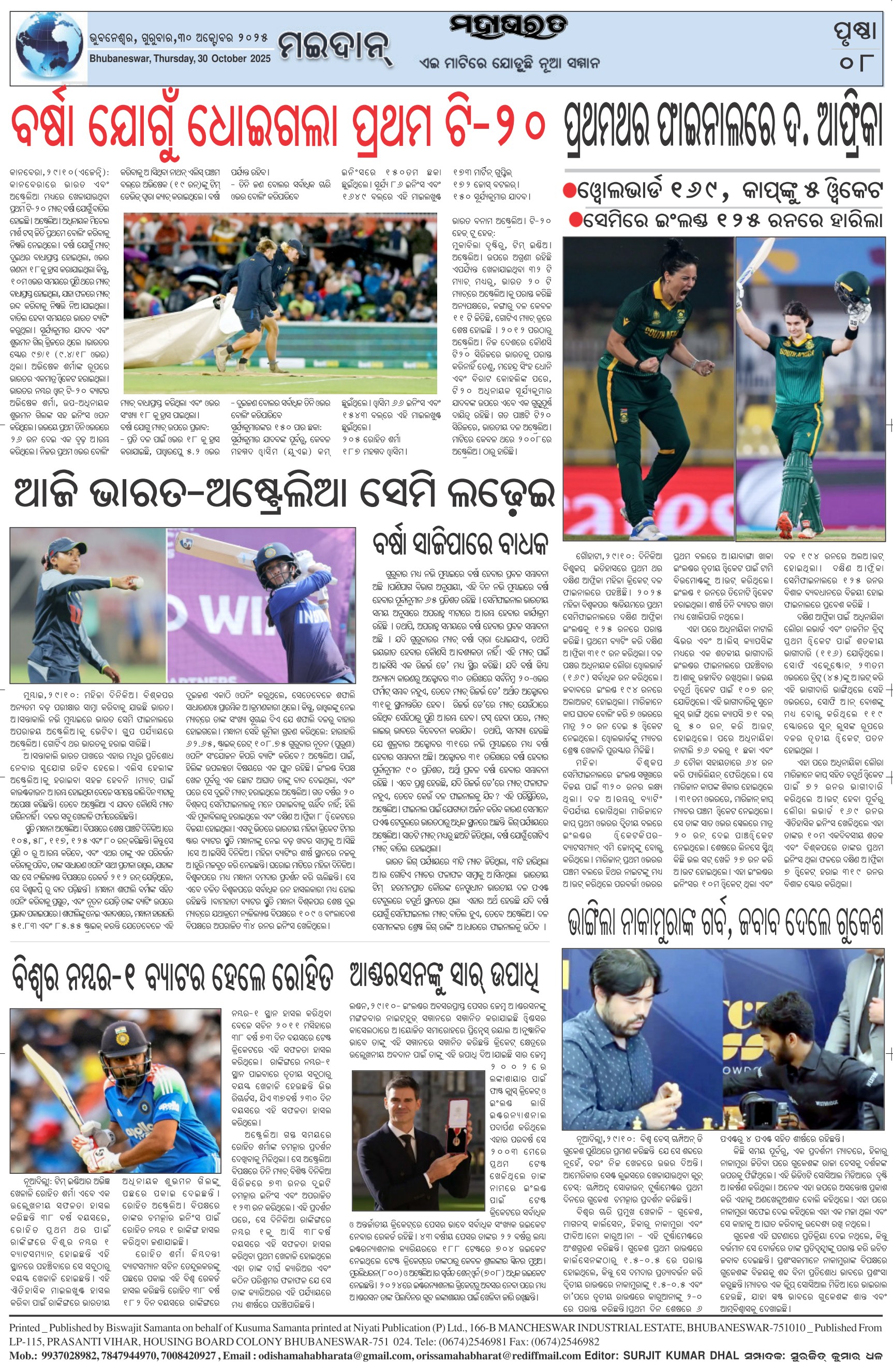 The Mahabharat Odia Daily Newspaper Page: 8 October 30, 2025 The Mahabharat Odia Daily Newspaper << First << 5 6 7 8 >> Last >> Page 1Page 2Page 3Page 4Page 5Page 6Page 7Page 8 × The Mahabharat Odia Daily Newspaper Page-1Page-2Page-3Page-4Page-5Page-6Page-7Page-8 Full PDF << First << 5 6 7 8 >> Last >> Page-1Page-2Page-3Page-4Page-5Page-6Page-7Page-8 Page-8