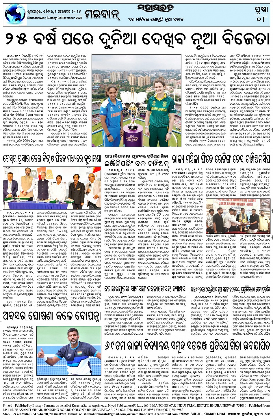 The Mahabharat Odia Daily Newspaper Page: 8 November 02, 2025 The Mahabharat Odia Daily Newspaper << First << 5 6 7 8 >> Last >> Page 1Page 2Page 3Page 4Page 5Page 6Page 7Page 8 × The Mahabharat Odia Daily Newspaper Page-1Page-2Page-3Page-4Page-5Page-6Page-7Page-8 Full PDF << First << 5 6 7 8 >> Last >> Page-1Page-2Page-3Page-4Page-5Page-6Page-7Page-8 Page-8