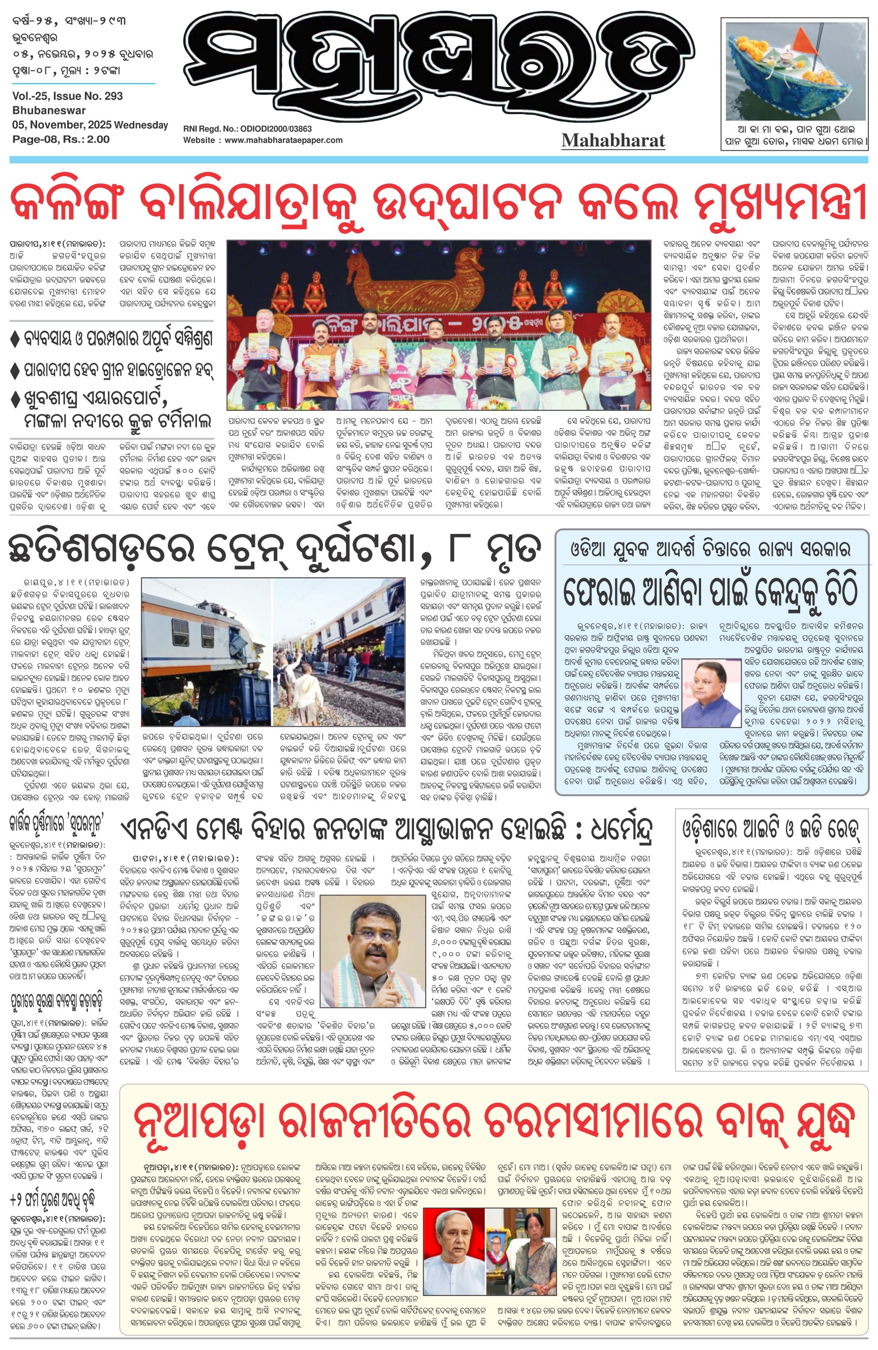 The Mahabharat Odia Daily Newspaper November 05, 2025 The Mahabharat Odia Daily Newspaper << First << 1 2 3 4 >> Last >> Page 1Page 2Page 3Page 4Page 5Page 6Page 7Page 8 × The Mahabharat Odia Daily Newspaper Page-1Page-2Page-3Page-4Page-5Page-6Page-7Page-8 Full PDF << First << 1 2 3 4 >> Last >> Page-1Page-2Page-3Page-4Page-5Page-6Page-7Page-8 Page-1