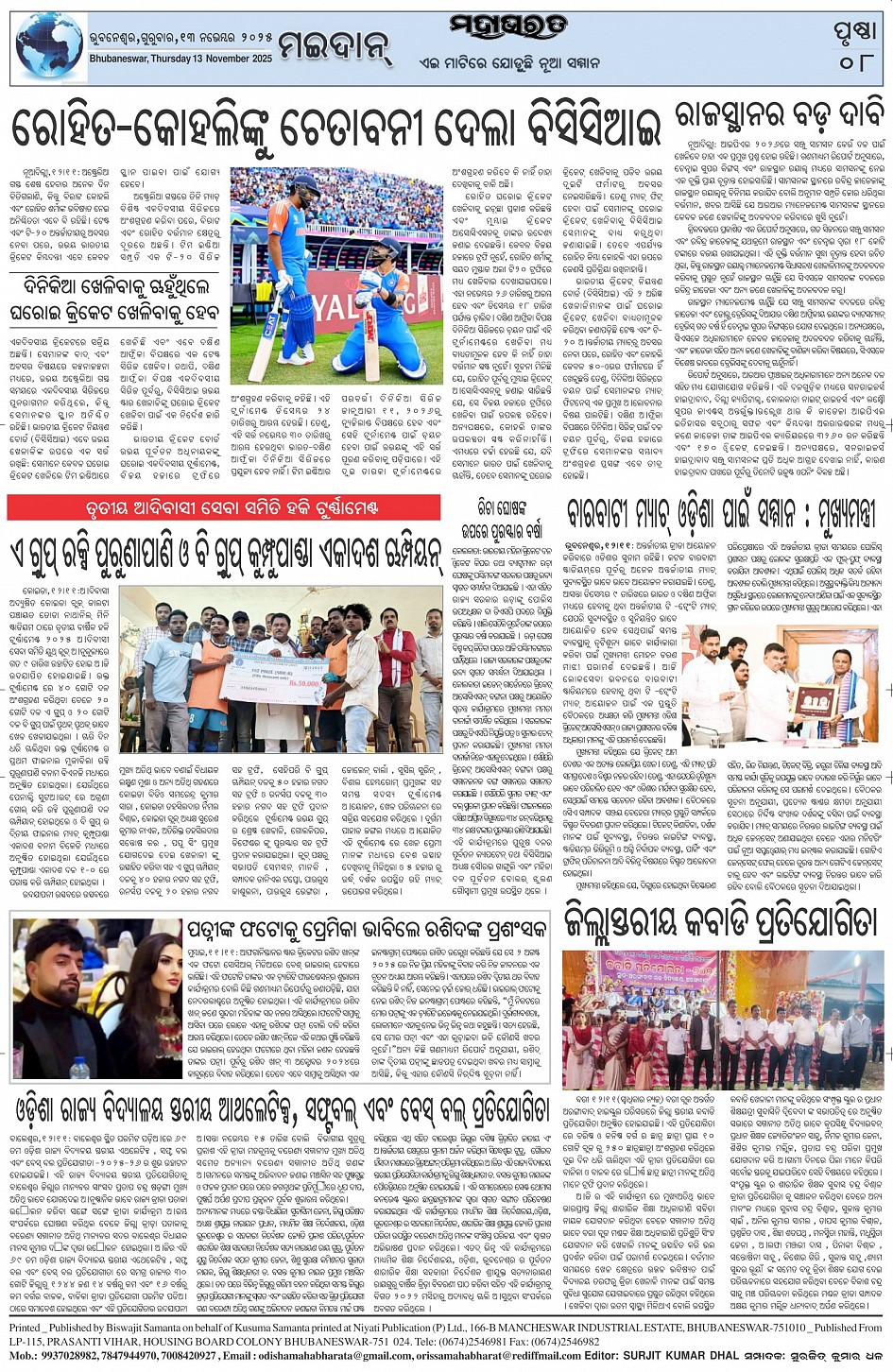 The Mahabharat Odia Daily Newspaper Page: 8 November 13, 2025 The Mahabharat Odia Daily Newspaper << First << 5 6 7 8 >> Last >> Page 1Page 2Page 3Page 4Page 5Page 6Page 7Page 8 × The Mahabharat Odia Daily Newspaper Page-1Page-2Page-3Page-4Page-5Page-6Page-7Page-8 Full PDF << First << 5 6 7 8 >> Last >> Page-1Page-2Page-3Page-4Page-5Page-6Page-7Page-8 Page-8