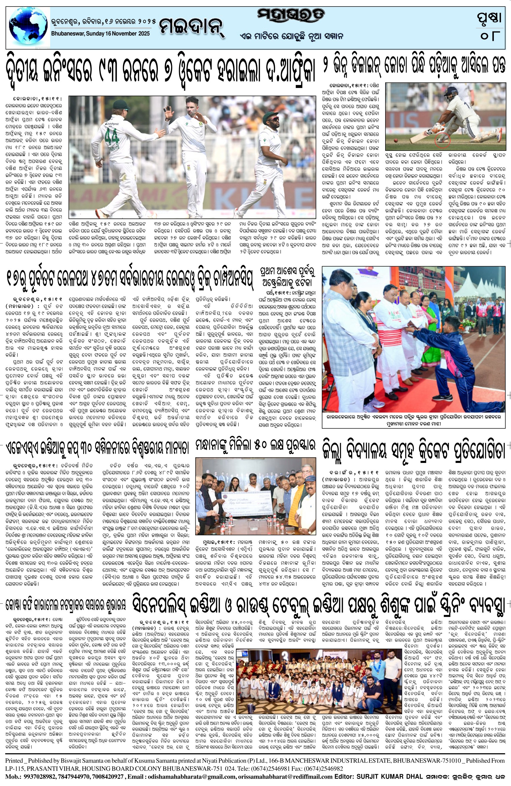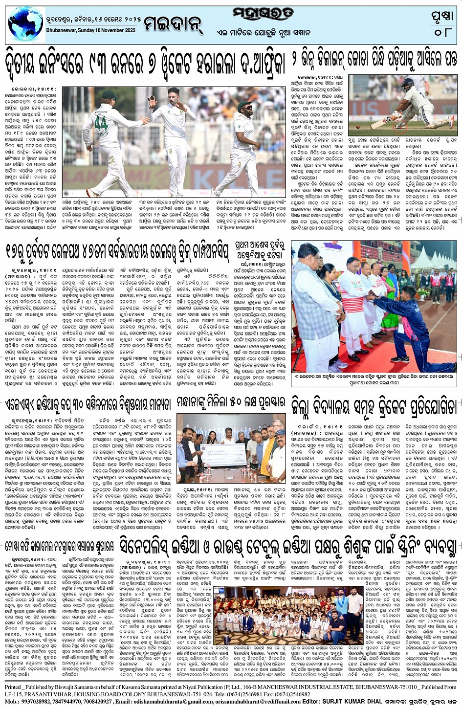 The Mahabharat Odia Daily Newspaper Page: 8 November 16, 2025 The Mahabharat Odia Daily Newspaper << First << 5 6 7 8 >> Last >> Page 1Page 2Page 3Page 4Page 5Page 6Page 7Page 8 × The Mahabharat Odia Daily Newspaper Page-1Page-2Page-3Page-4Page-5Page-6Page-7Page-8 Full PDF << First << 5 6 7 8 >> Last >> Page-1Page-2Page-3Page-4Page-5Page-6Page-7Page-8 Page-8
