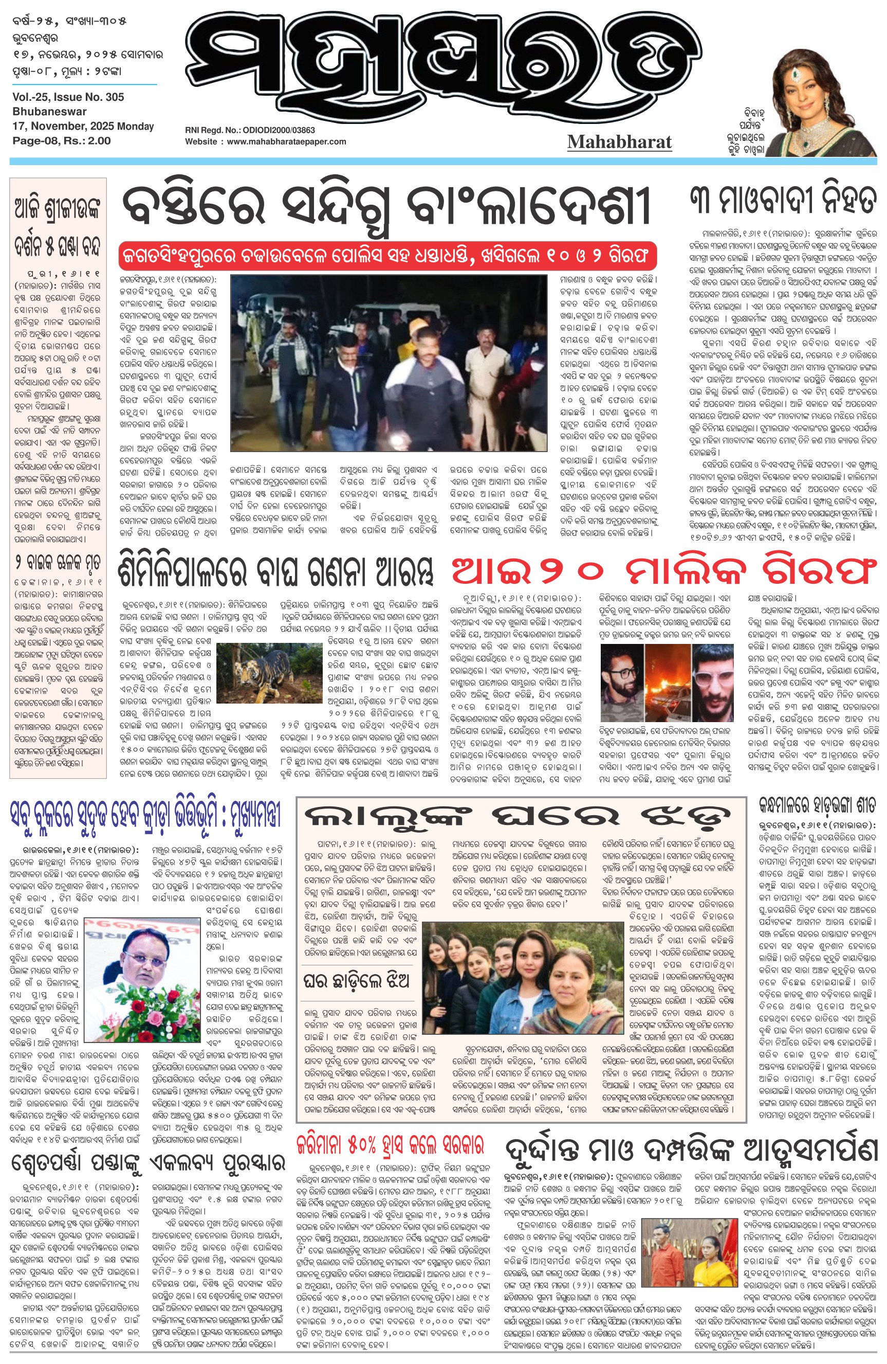 The Mahabharat Odia Daily Newspaper November 17, 2025 The Mahabharat Odia Daily Newspaper << First << 1 2 3 4 >> Last >> Page 1Page 2Page 3Page 4Page 5Page 6Page 7Page 8 × The Mahabharat Odia Daily Newspaper Page-1Page-2Page-3Page-4Page-5Page-6Page-7Page-8 << First << 1 2 3 4 >> Last >> Page-1Page-2Page-3Page-4Page-5Page-6Page-7Page-8 Page-1