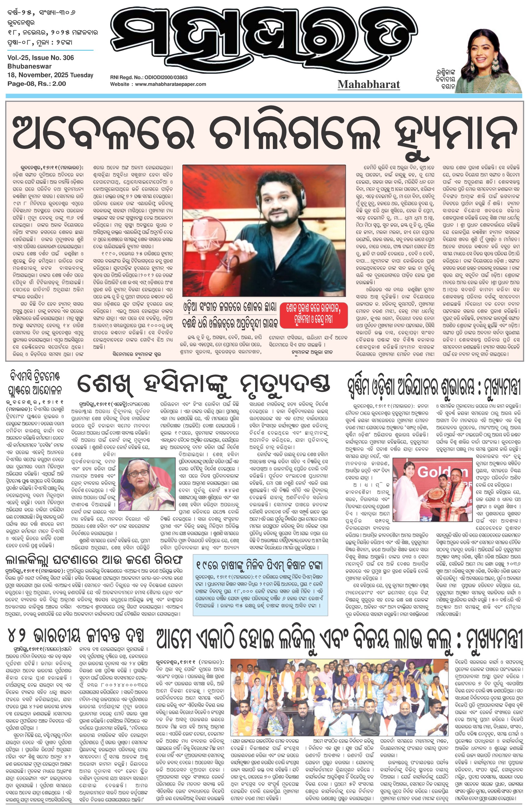 The Mahabharat Odia Daily Newspaper November 18, 2025 The Mahabharat Odia Daily Newspaper << First << 1 2 3 4 >> Last >> Page 1Page 2Page 3Page 4Page 5Page 6Page 7Page 8 × The Mahabharat Odia Daily Newspaper Page-1Page-2Page-3Page-4Page-5Page-6Page-7Page-8 Full PDF << First << 1 2 3 4 >> Last >> Page-1Page-2Page-3Page-4Page-5Page-6Page-7Page-8 Page-1