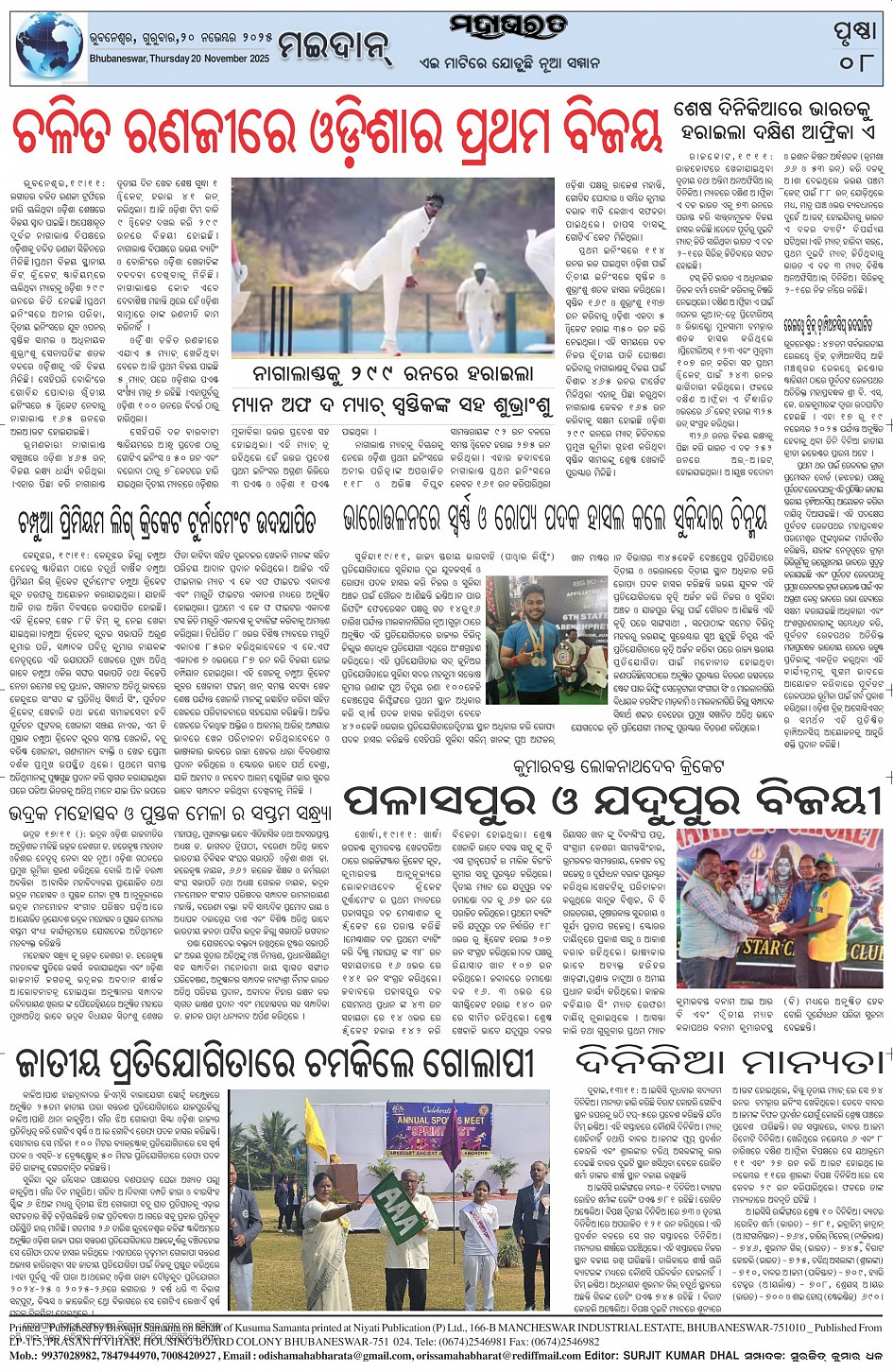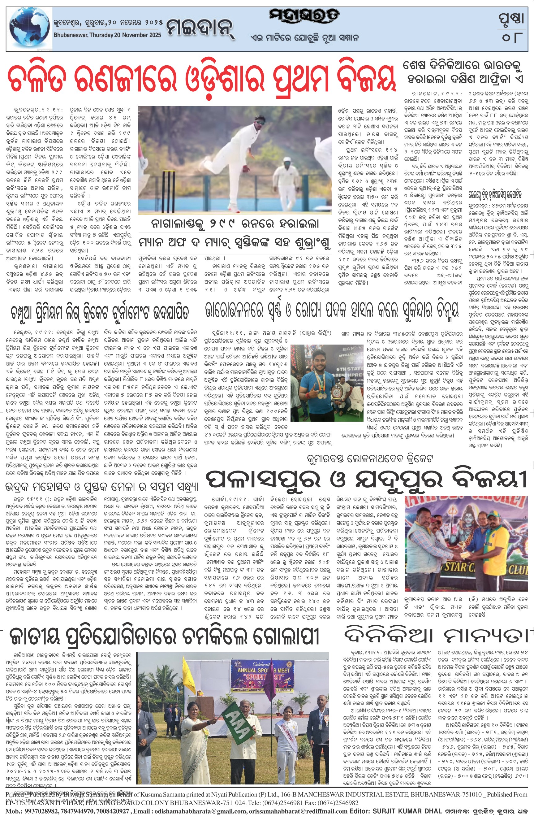 The Mahabharat Odia Daily Newspaper Page: 8 November 20, 2025 The Mahabharat Odia Daily Newspaper << First << 5 6 7 8 >> Last >> Page 1Page 2Page 3Page 4Page 5Page 6Page 7Page 8 × The Mahabharat Odia Daily Newspaper Page-1Page-2Page-3Page-4Page-5Page-6Page-7Page-8 Full PDF << First << 5 6 7 8 >> Last >> Page-1Page-2Page-3Page-4Page-5Page-6Page-7Page-8 Page-8