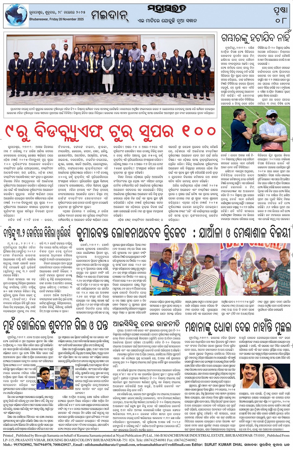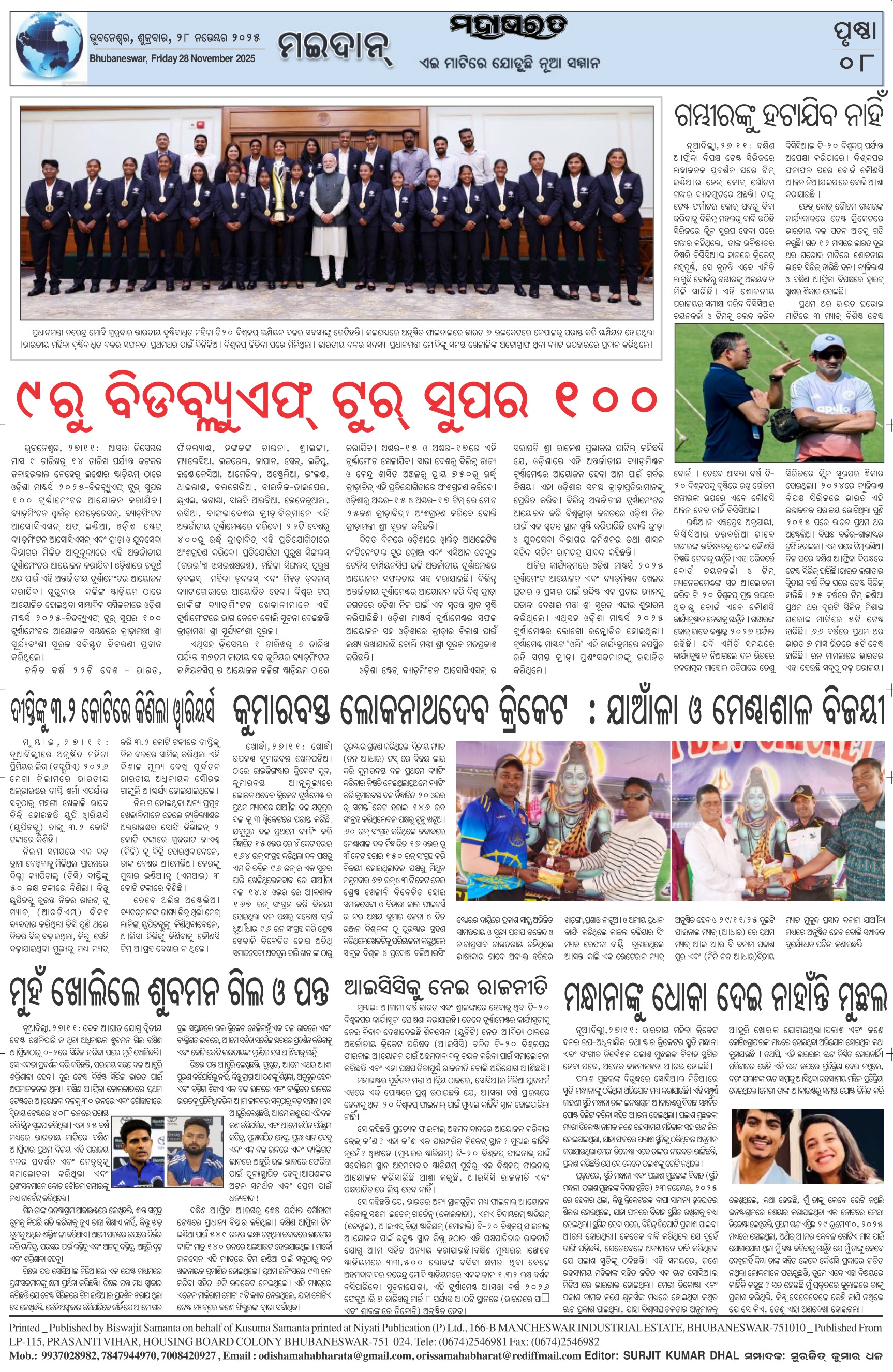 The Mahabharat Odia Daily Newspaper Page: 8 November 28, 2025 The Mahabharat Odia Daily Newspaper << First << 5 6 7 8 >> Last >> Page 1Page 2Page 3Page 4Page 5Page 6Page 7Page 8 × The Mahabharat Odia Daily Newspaper Page-1Page-2Page-3Page-4Page-5Page-6Page-7Page-8 Full PDF << First << 5 6 7 8 >> Last >> Page-1Page-2Page-3Page-4Page-5Page-6Page-7Page-8 Page-8