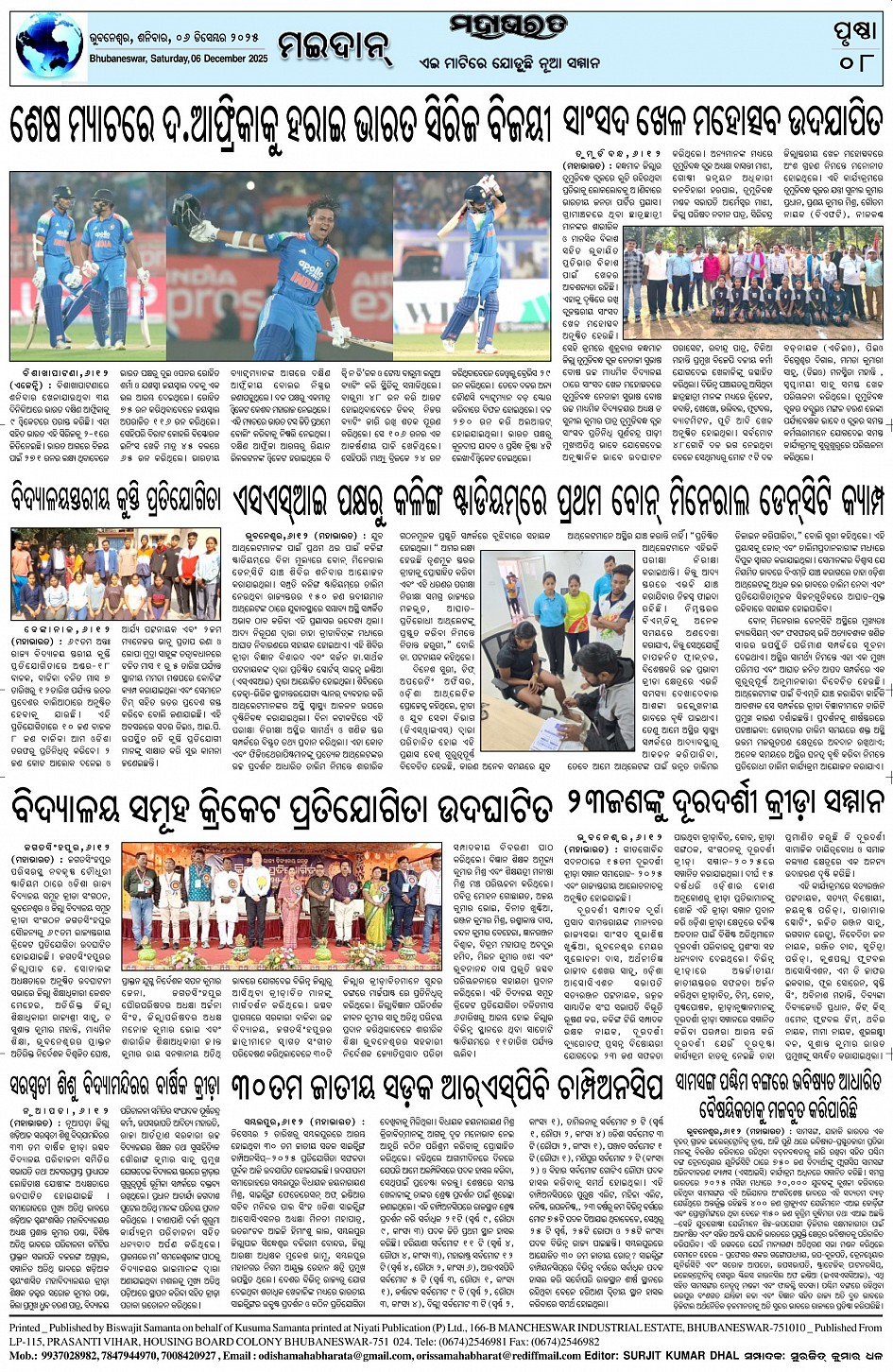 The Mahabharat Odia Daily Newspaper Page: 8 December 07, 2025 The Mahabharat Odia Daily Newspaper << First << 5 6 7 8 >> Last >> Page 1Page 2Page 3Page 4Page 5Page 6Page 7Page 8 × The Mahabharat Odia Daily Newspaper Page-1Page-2Page-3Page-4Page-5Page-6Page-7Page-8 Full PDF << First << 5 6 7 8 >> Last >> Page-1Page-2Page-3Page-4Page-5Page-6Page-7Page-8 Page-8
