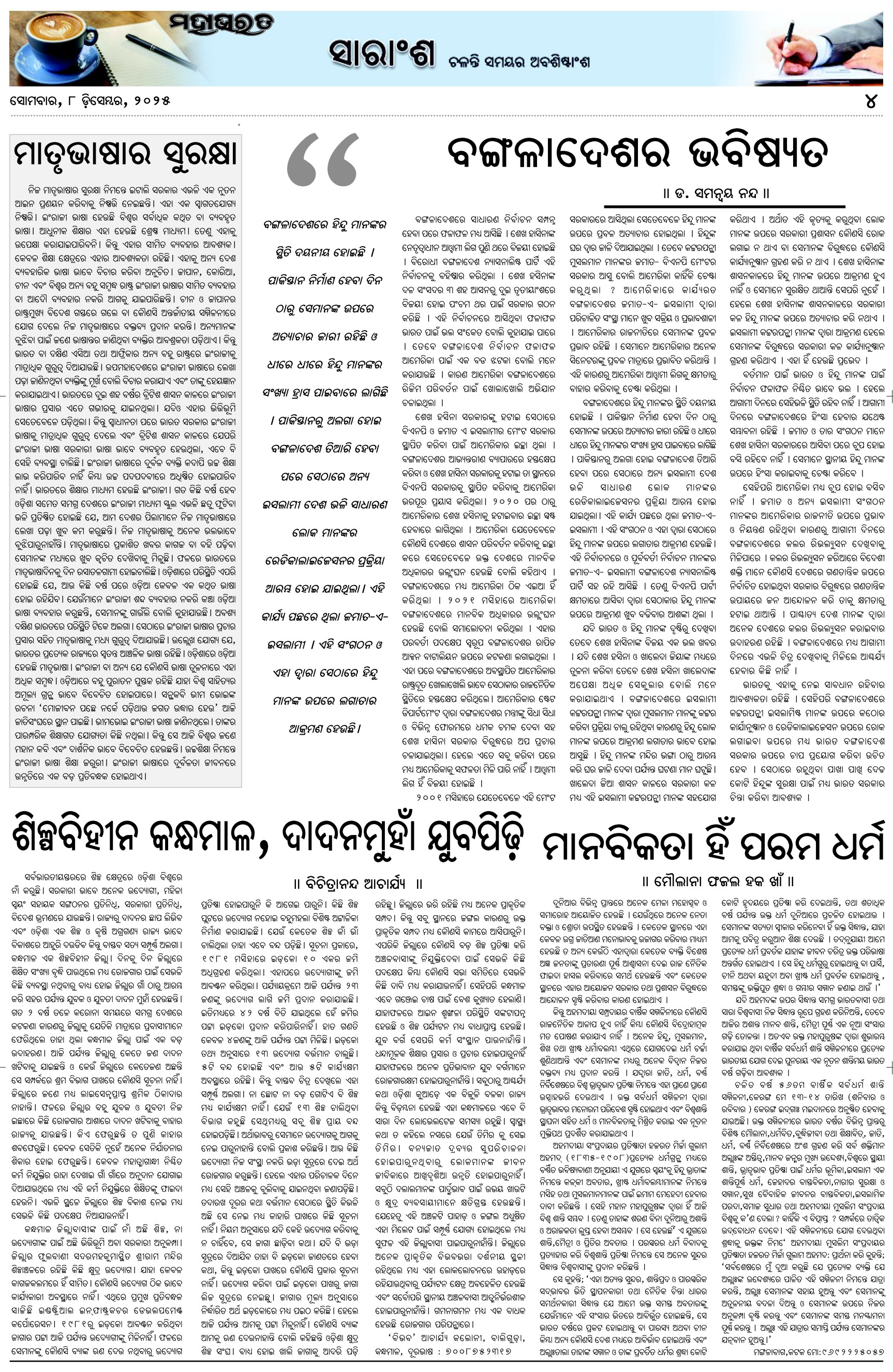 The Mahabharat Odia Daily Newspaper Page: 4 December 08, 2025 The Mahabharat Odia Daily Newspaper << First << 2 3 4 5 >> Last >> Page 1Page 2Page 3Page 4Page 5Page 6Page 7Page 8 × The Mahabharat Odia Daily Newspaper Page-1Page-2Page-3Page-4Page-5Page-6Page-7Page-8 Full PDF << First << 2 3 4 5 >> Last >> Page-1Page-2Page-3Page-4Page-5Page-6Page-7Page-8 Page-4