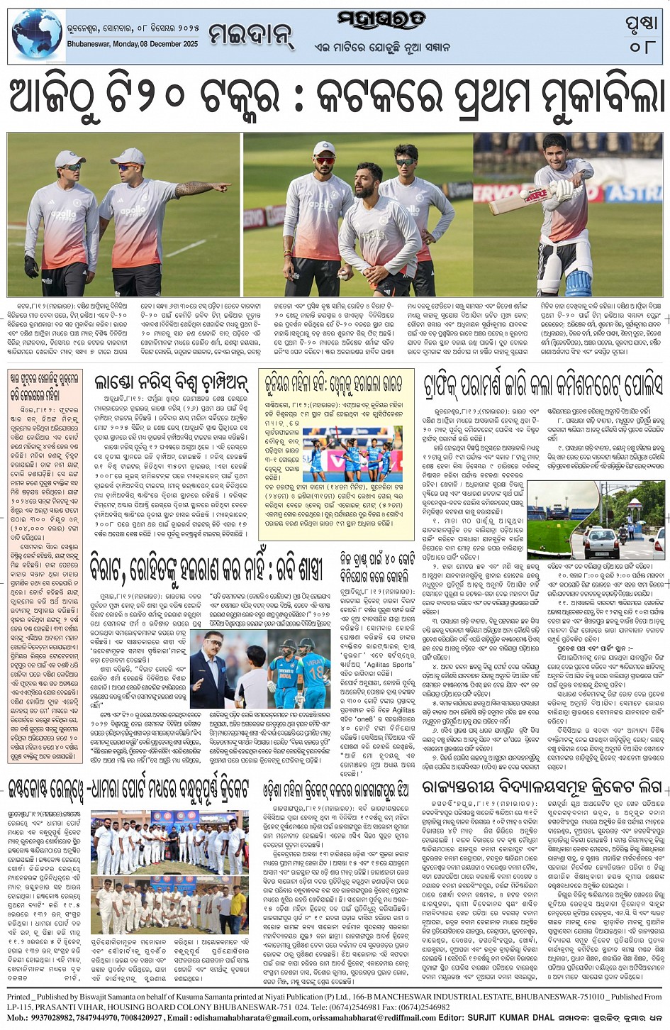 The Mahabharat Odia Daily Newspaper Page: 8 December 09, 2025 The Mahabharat Odia Daily Newspaper << First << 5 6 7 8 >> Last >> Page 1Page 2Page 3Page 4Page 5Page 6Page 7Page 8 × The Mahabharat Odia Daily Newspaper Page-1Page-2Page-3Page-4Page-5Page-6Page-7Page-8 Full PDF << First << 5 6 7 8 >> Last >> Page-1Page-2Page-3Page-4Page-5Page-6Page-7Page-8 Page-8