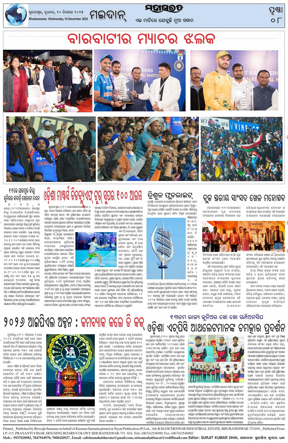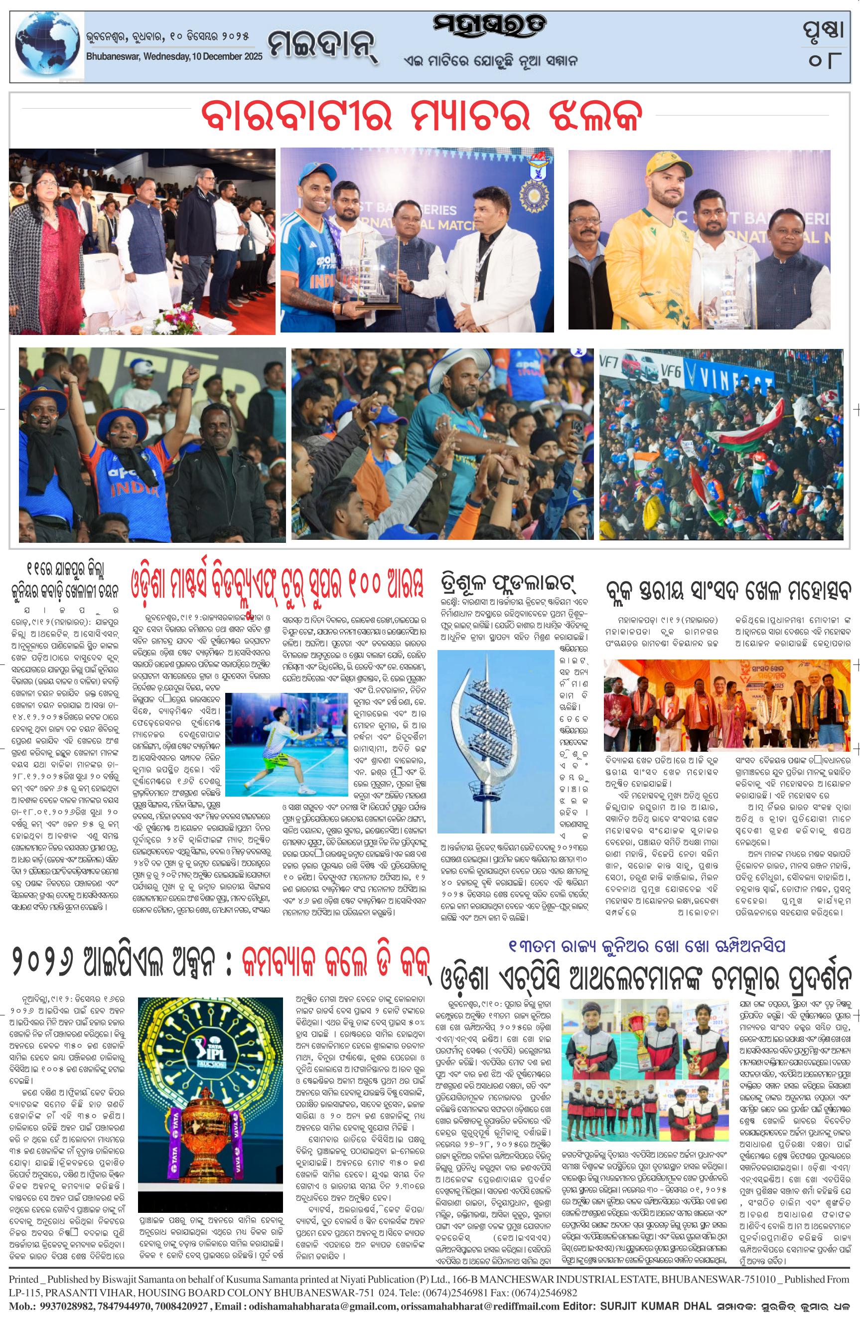 The Mahabharat Odia Daily Newspaper Page: 8 December 10, 2025 The Mahabharat Odia Daily Newspaper << First << 5 6 7 8 >> Last >> Page 1Page 2Page 3Page 4Page 5Page 6Page 7Page 8 × The Mahabharat Odia Daily Newspaper Page-1Page-2Page-3Page-4Page-5Page-6Page-7Page-8 Full PDF << First << 5 6 7 8 >> Last >> Page-1Page-2Page-3Page-4Page-5Page-6Page-7Page-8 Page-8
