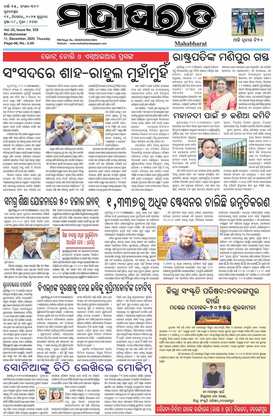 The Mahabharat Odia Daily Newspaper December 11, 2025 The Mahabharat Odia Daily Newspaper << First << 1 2 3 4 >> Last >> Page 1Page 2Page 3Page 4Page 5Page 6Page 7Page 8 × The Mahabharat Odia Daily Newspaper Page-1Page-2Page-3Page-4Page-5Page-6Page-7Page-8 << First << 1 2 3 4 >> Last >> Page-1Page-2Page-3Page-4Page-5Page-6Page-7Page-8 Page-1