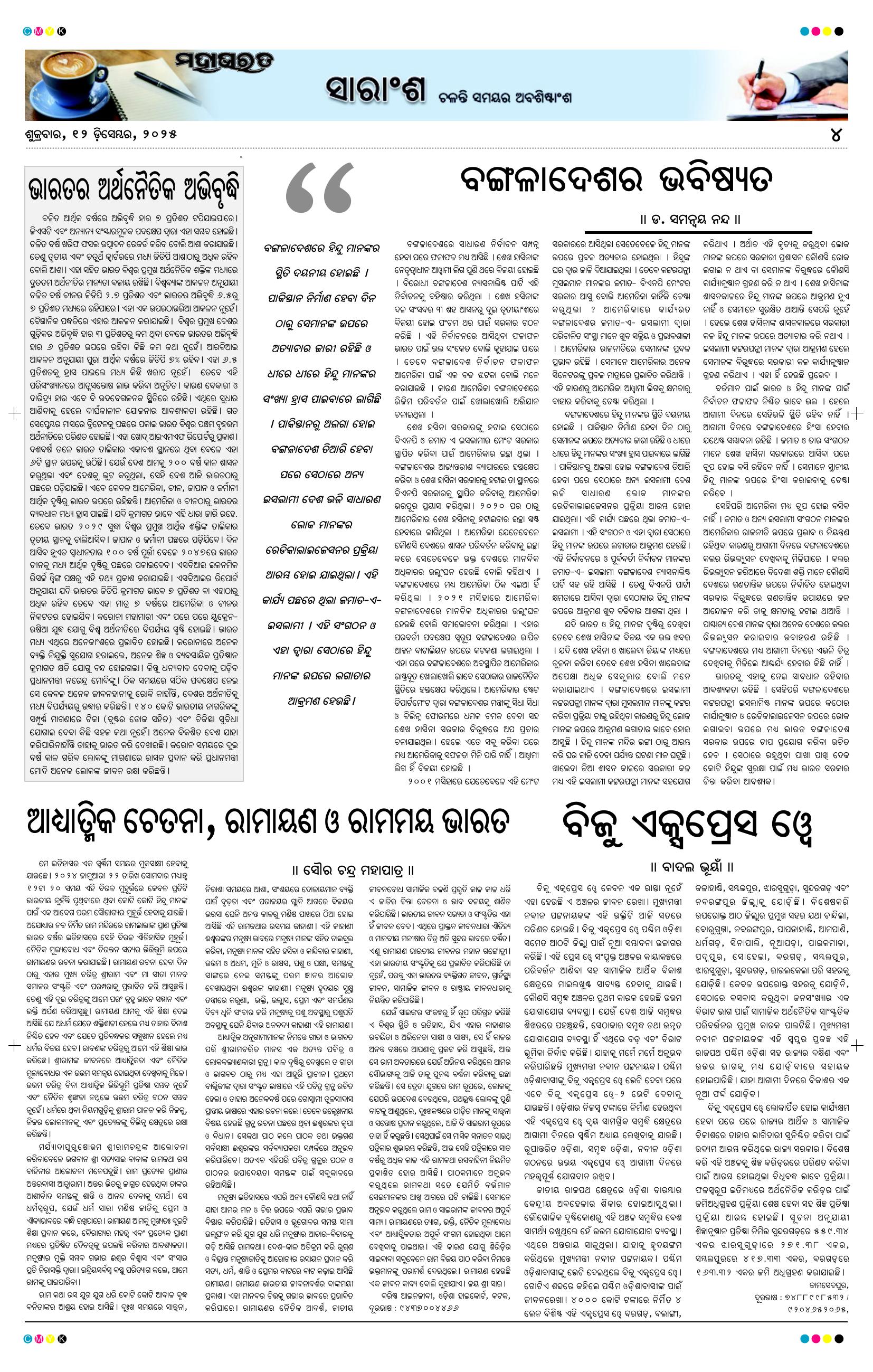 The Mahabharat Odia Daily Newspaper Page: 4 December 12, 2025 The Mahabharat Odia Daily Newspaper << First << 2 3 4 5 >> Last >> Page 1Page 2Page 3Page 4Page 5Page 6Page 7Page 8 × The Mahabharat Odia Daily Newspaper Page-1Page-2Page-3Page-4Page-5Page-6Page-7Page-8 Full PDF << First << 2 3 4 5 >> Last >> Page-1Page-2Page-3Page-4Page-5Page-6Page-7Page-8 Page-4