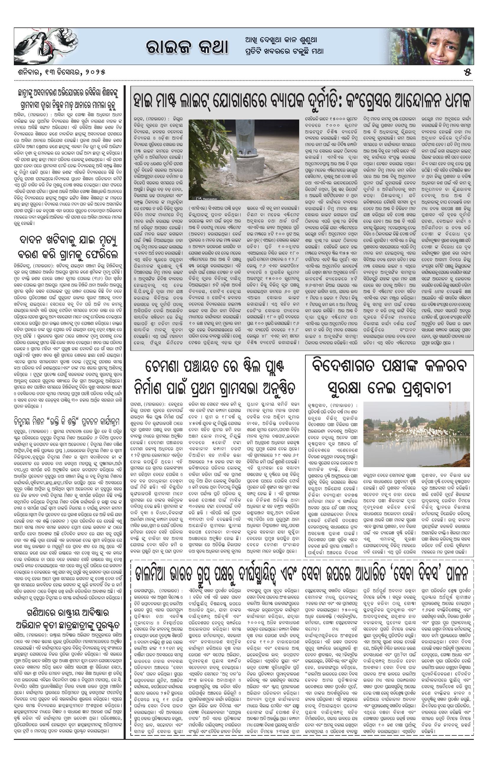 The Mahabharat Odia Daily Newspaper Page: 5 December 13, 2025 The Mahabharat Odia Daily Newspaper << First << 3 4 5 6 >> Last >> Page 1Page 2Page 3Page 4Page 5Page 6Page 7Page 8 × The Mahabharat Odia Daily Newspaper Page-1Page-2Page-3Page-4Page-5Page-6Page-7Page-8 Full PDF << First << 3 4 5 6 >> Last >> Page-1Page-2Page-3Page-4Page-5Page-6Page-7Page-8 Page-5