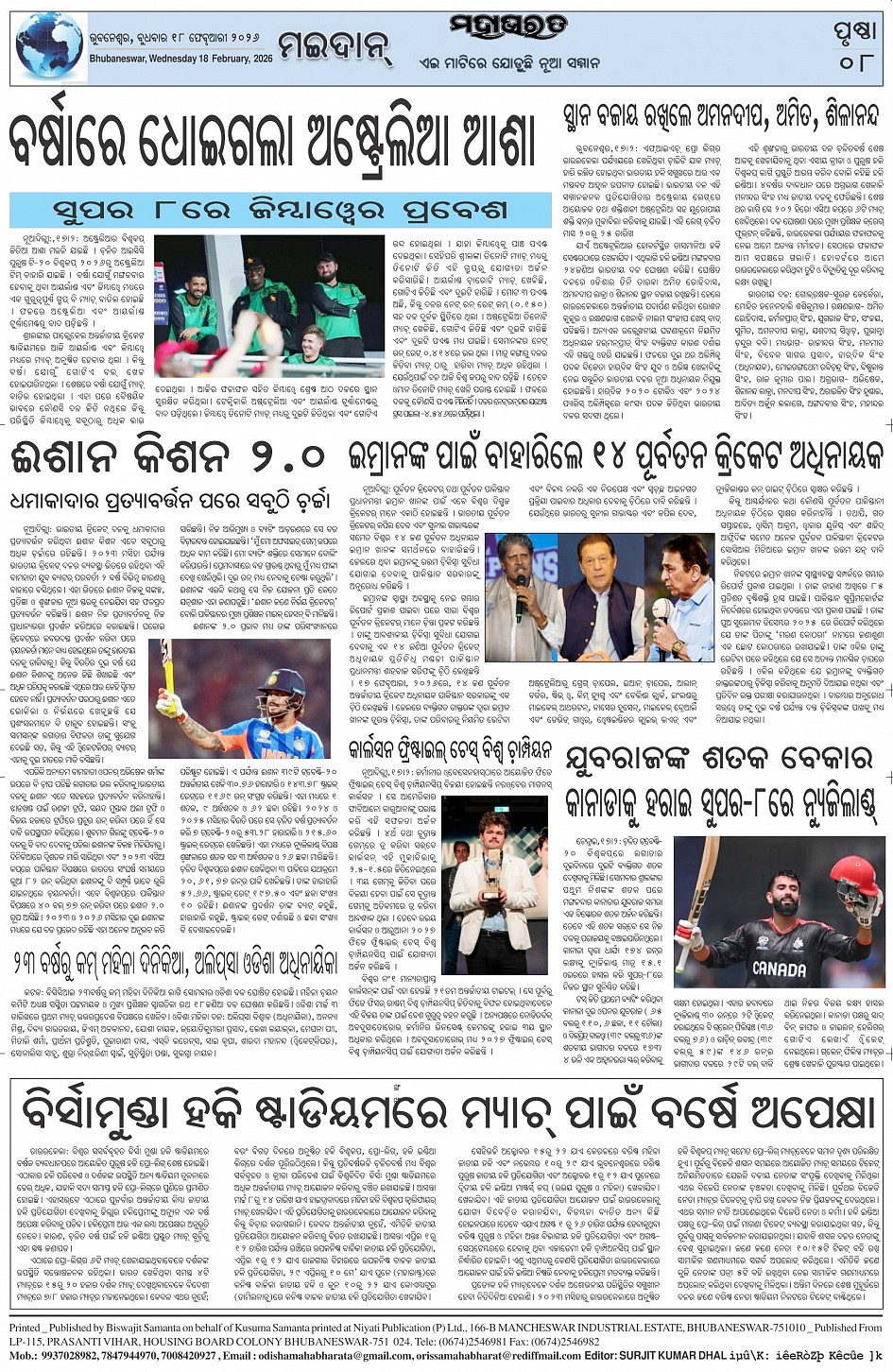 The Mahabharat Odia Daily Newspaper Page: 8 February 18, 2026 The Mahabharat Odia Daily Newspaper << First << 5 6 7 8 >> Last >> Page 1Page 2Page 3Page 4Page 5Page 6Page 7Page 8 × The Mahabharat Odia Daily Newspaper Page-1Page-2Page-3Page-4Page-5Page-6Page-7Page-8 Full PDF << First << 5 6 7 8 >> Last >> Page-1Page-2Page-3Page-4Page-5Page-6Page-7Page-8 Page-8