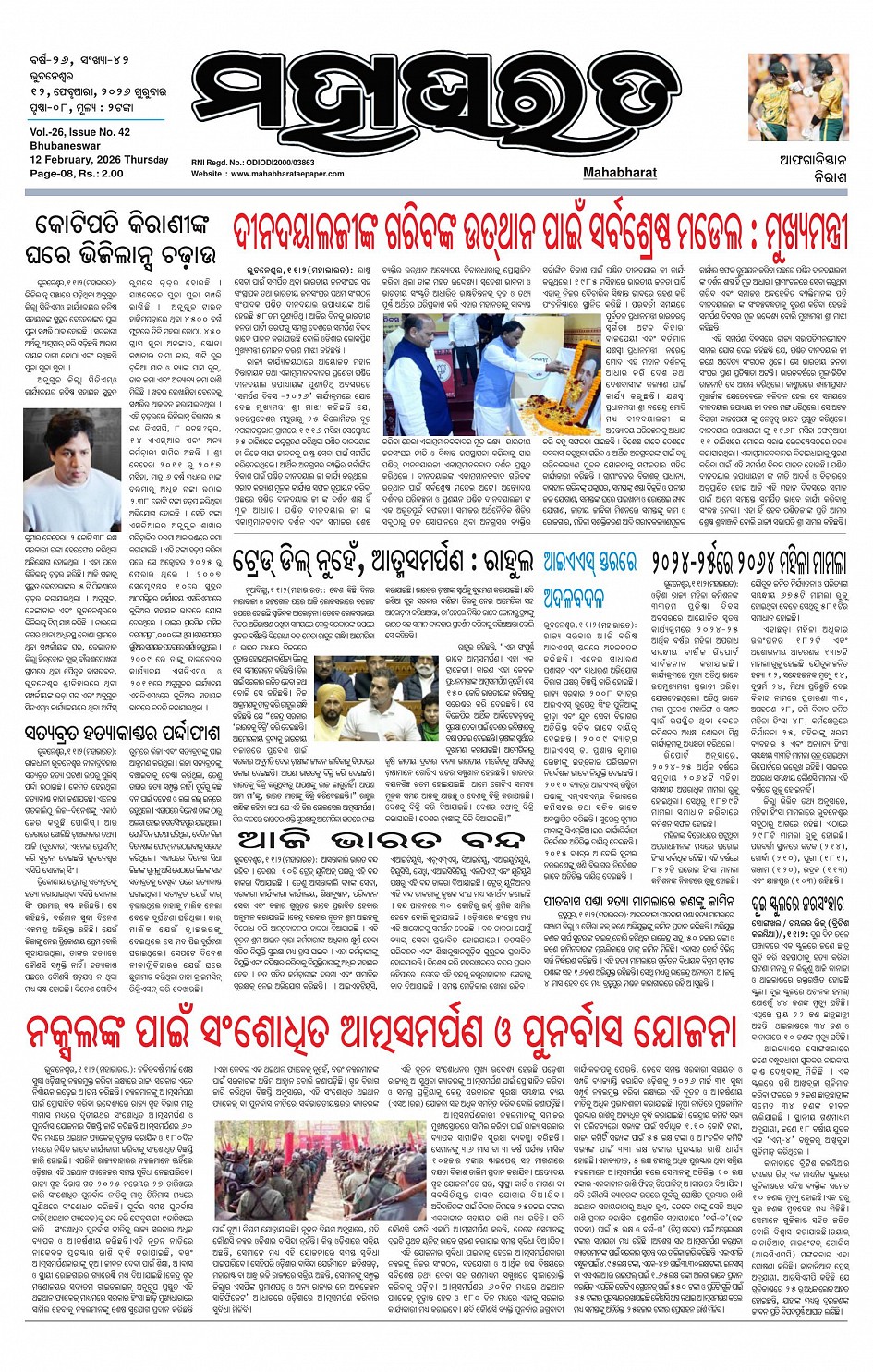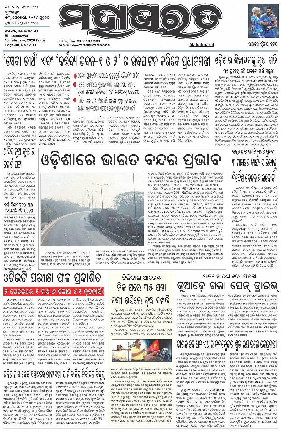 The Mahabharat Odia Daily Newspaper February 13, 2026 The Mahabharat Odia Daily Newspaper << First << 1 2 3 4 >> Last >> Page 1Page 2Page 3Page 4Page 5Page 6Page 7Page 8 × The Mahabharat Odia Daily Newspaper Page-1Page-2Page-3Page-4Page-5Page-6Page-7Page-8 Full PDF << First << 1 2 3 4 >> Last >> Page-1Page-2Page-3Page-4Page-5Page-6Page-7Page-8 Page-1