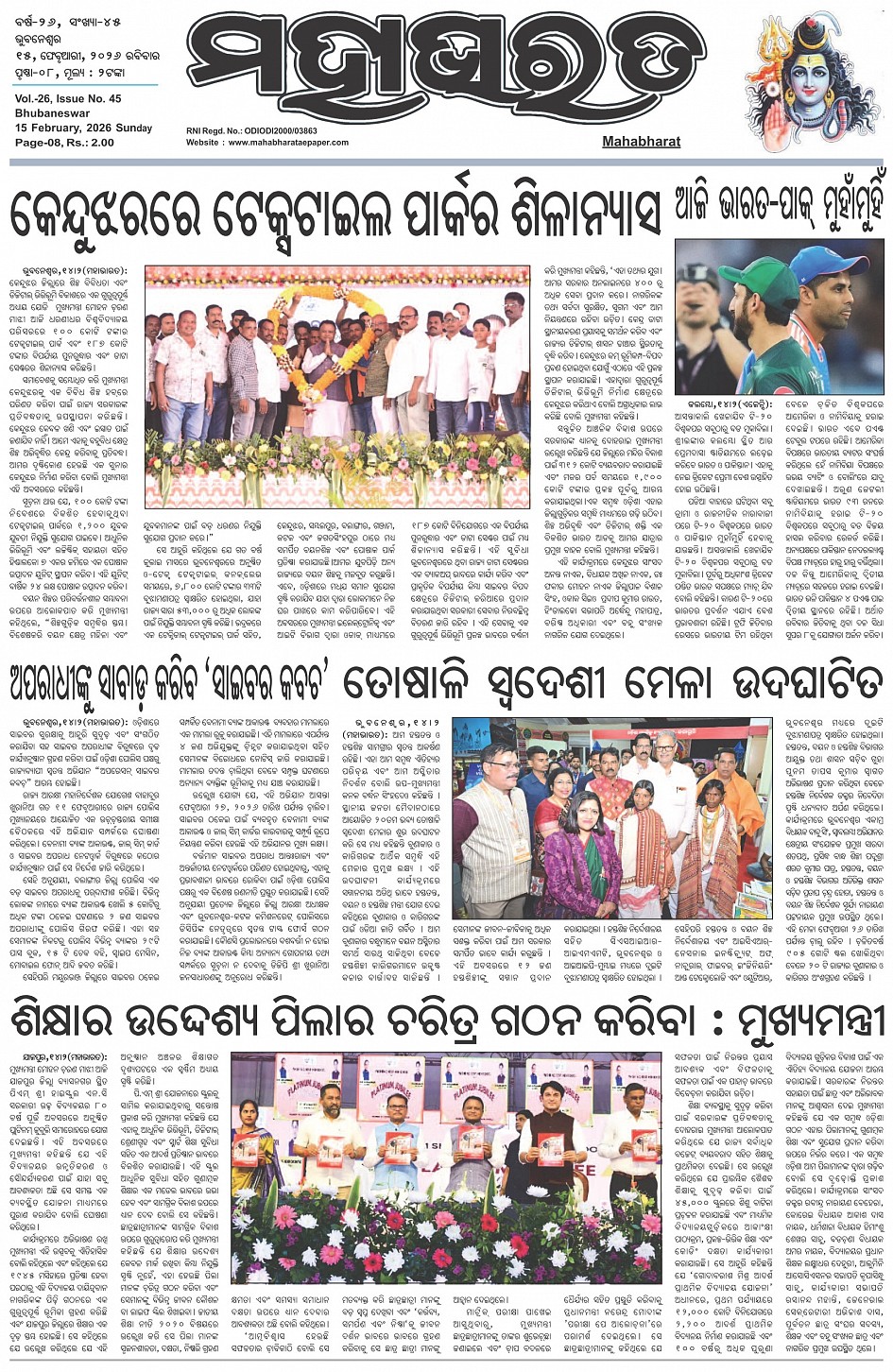 The Mahabharat Odia Daily Newspaper February 15, 2026 The Mahabharat Odia Daily Newspaper << First << 1 2 3 4 >> Last >> Page 1Page 2Page 3Page 4Page 5Page 6Page 7Page 8 × The Mahabharat Odia Daily Newspaper Page-1Page-2Page-3Page-4Page-5Page-6Page-7Page-8 Full PDF << First << 1 2 3 4 >> Last >> Page-1Page-2Page-3Page-4Page-5Page-6Page-7Page-8 Page-1